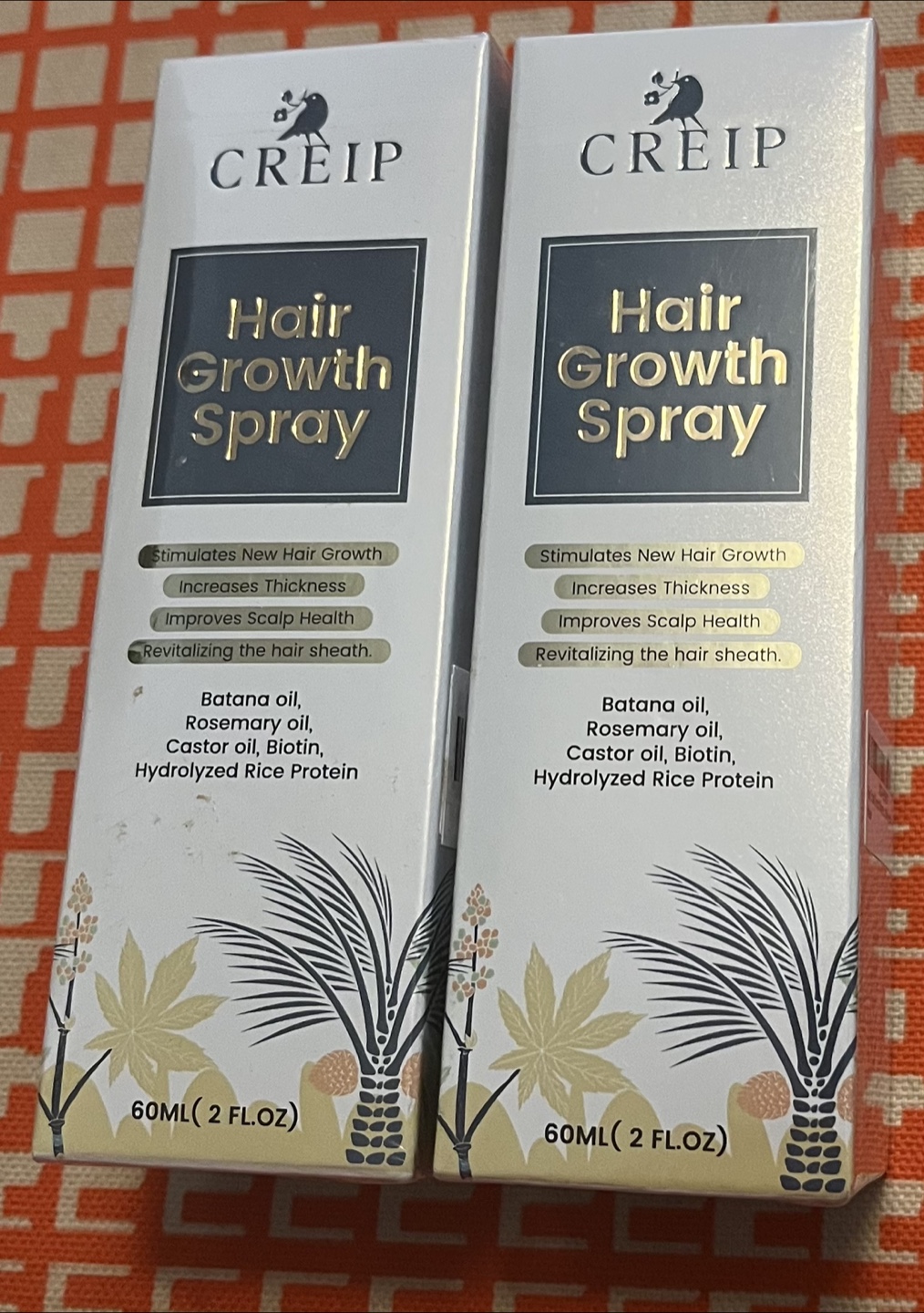 Two bottles of CREIP Hair Growth Spray for sale! This spray: