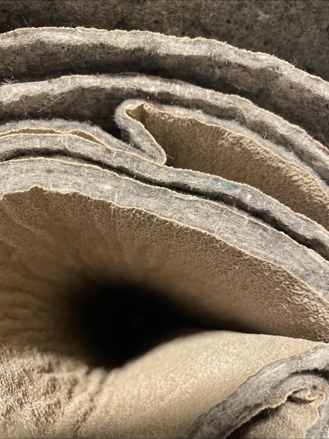 Made from pre-consumer needle-punched recycled synthetic fibers with an attached nonslip natural and synthetic rubber backing.