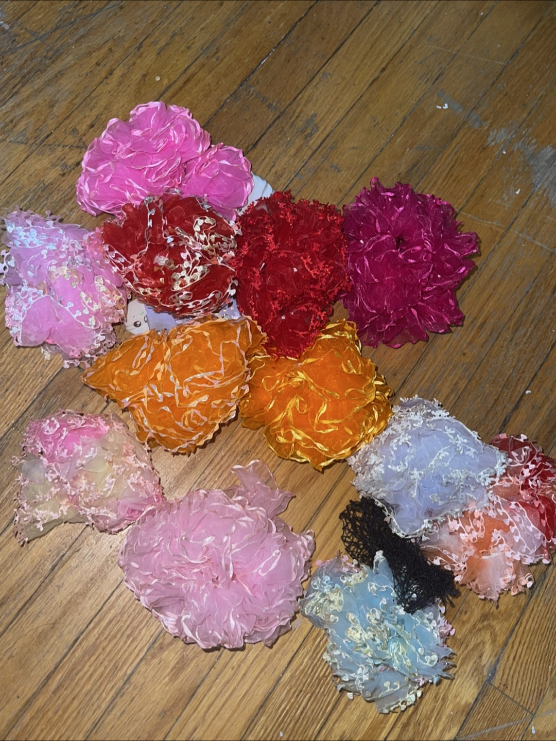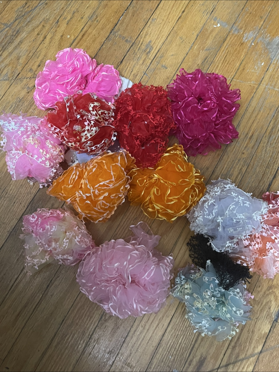 Here's a collection of decorative mesh flowers in various colours.