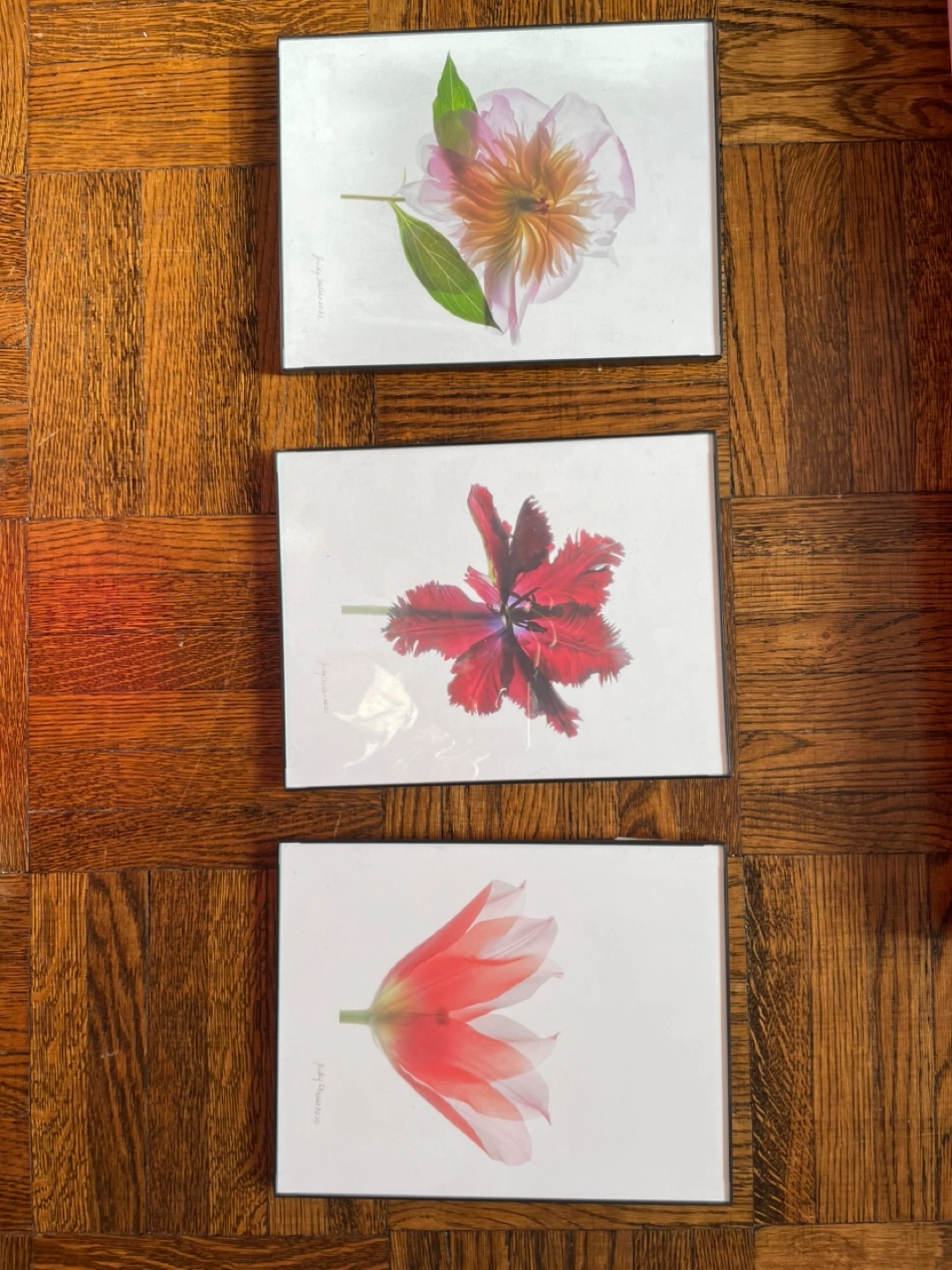 Selling a set of three framed art prints by Judy Stalus. Each print features a different flower, and they're all in excellent condition. Ready to add a touch of floral beauty to your space!