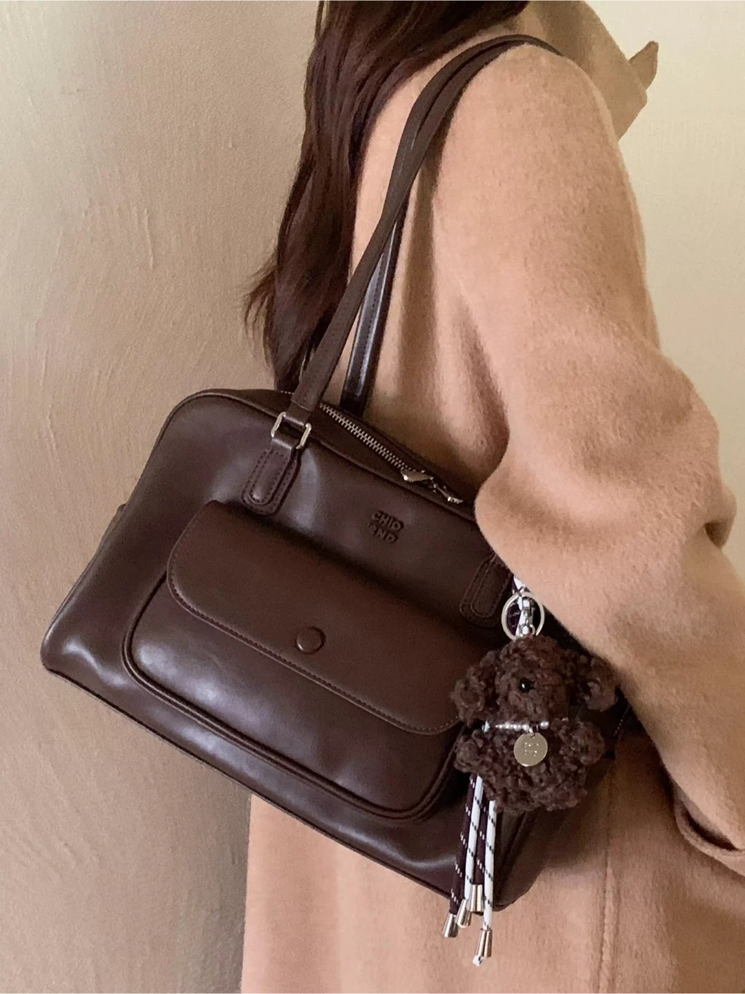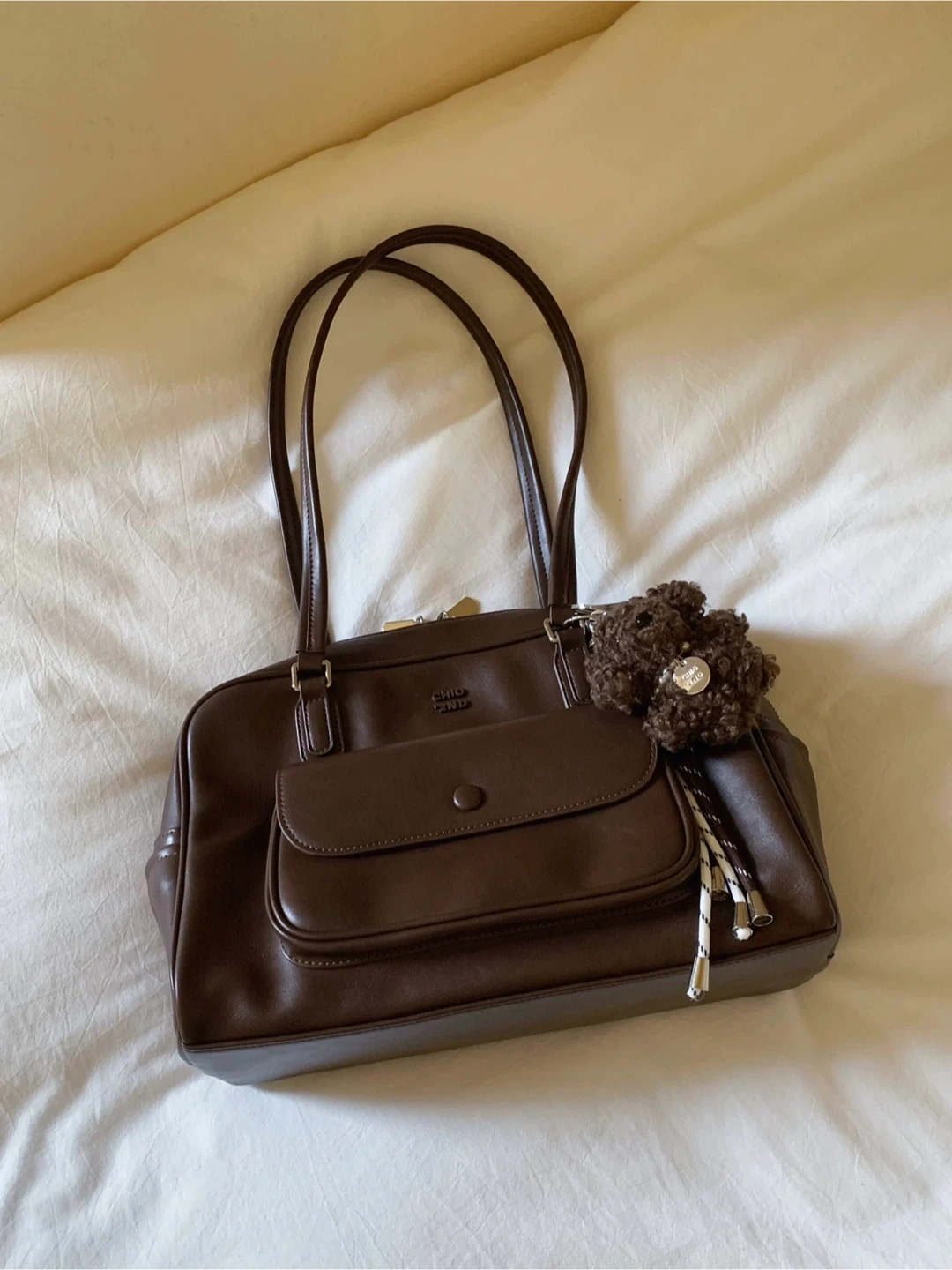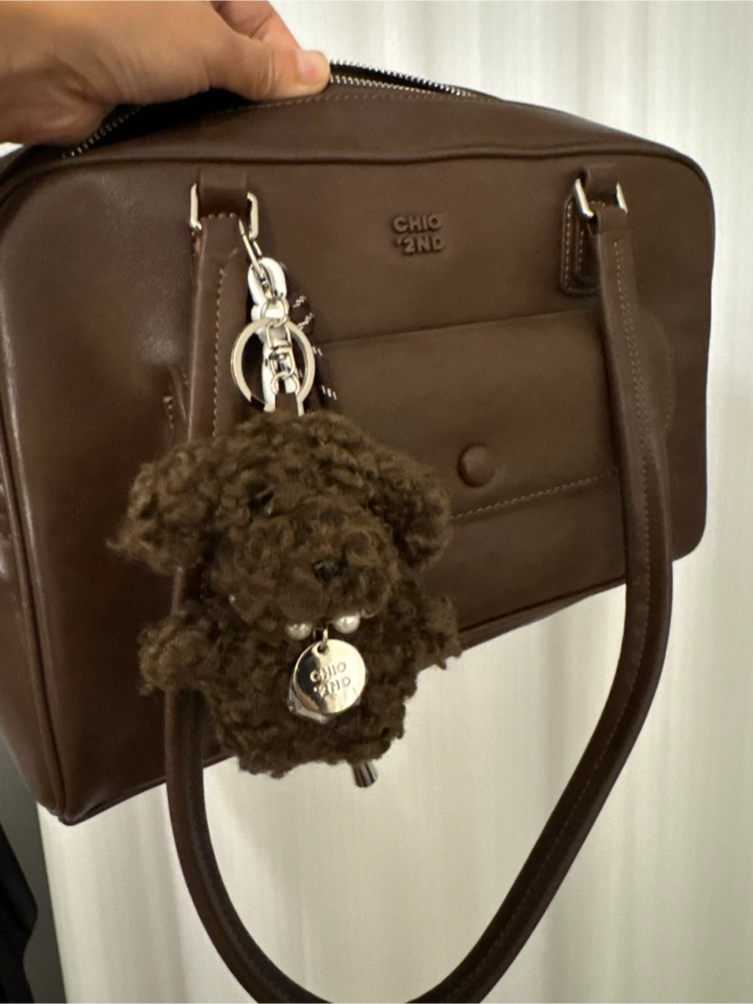 Selling a stylish CHIC 2ND brown leather tote bag. It's in great condition and perfect for everyday use. The bag features a front pocket and comes with a cute teddy bear charm. A great addition to your wardrobe!