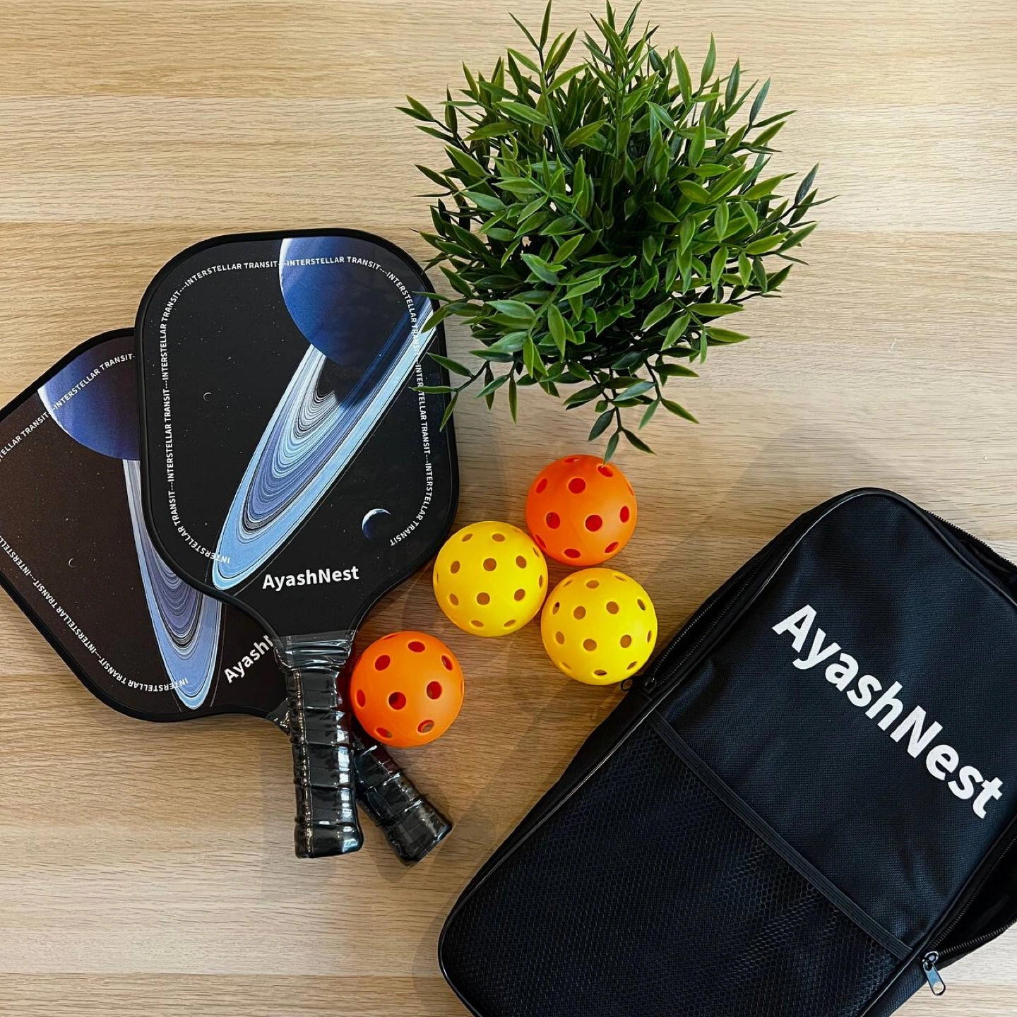 Looking to get into pickleball? This AyashNest set is perfect! It includes two paddles with a cool interstellar design, pickleballs, and a handy carrying bag to keep everything together. Great for beginners or anyone wanting a fun, portable set