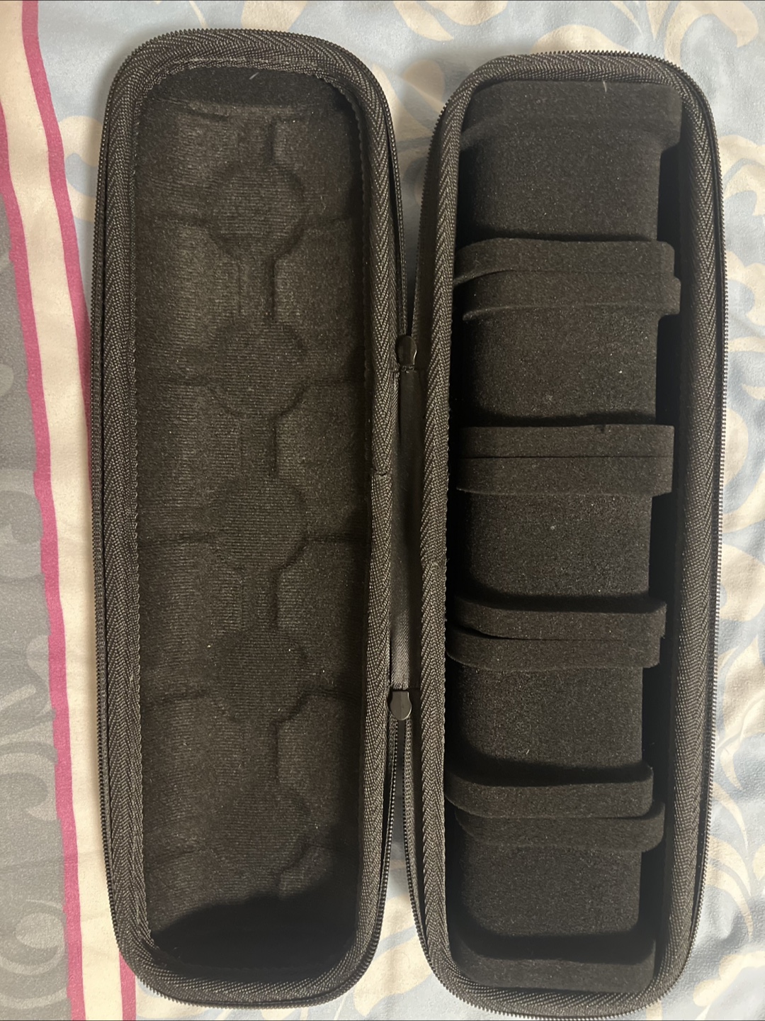 Selling a black zippered watches case! Is perfect for keeping your watches safe and secure. It has a soft interior to prevent scratches and a sturdy exterior for protection