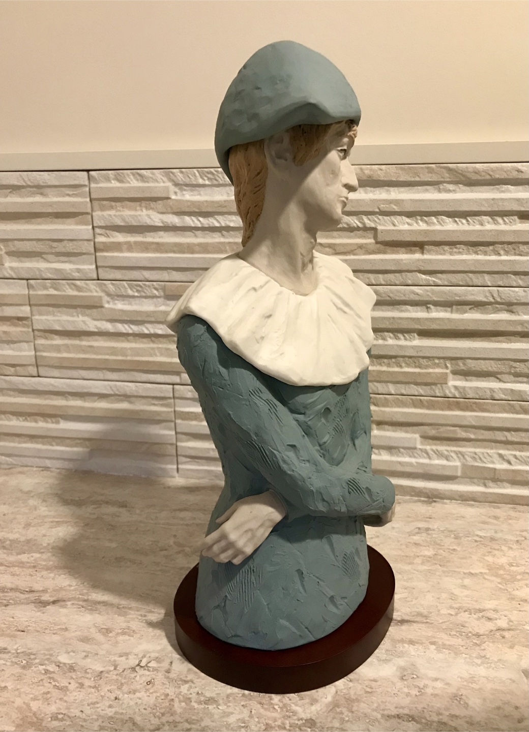 Warm brown real wood pedestal, Beautiful WEDGEWOOD BLUE Boy Mime