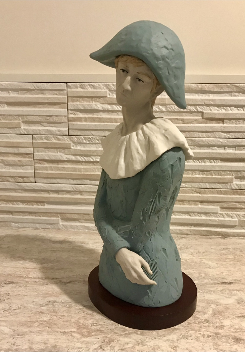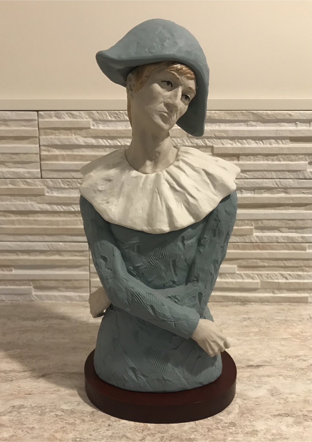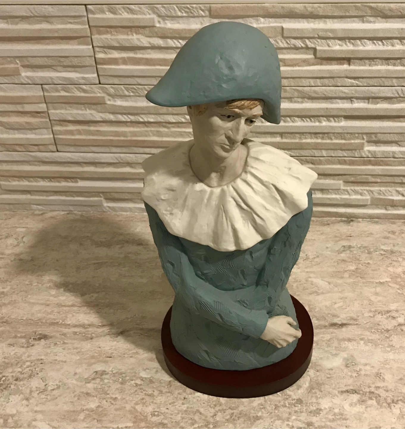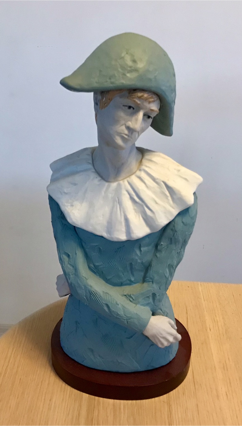 Spanish Spain Theatre mask performance Marcel Marceau mime clown jester figure figurine statuette vintage collectible antique curio cabinet display decor bookcase bookshelf shelf porcelain ceramic Hummel Lladro Royal Doulton Fringe ticket Shakespeare Shakespearean play production acting costume music box history historical French France European royal court ceramic Valentine’s Day present gift
