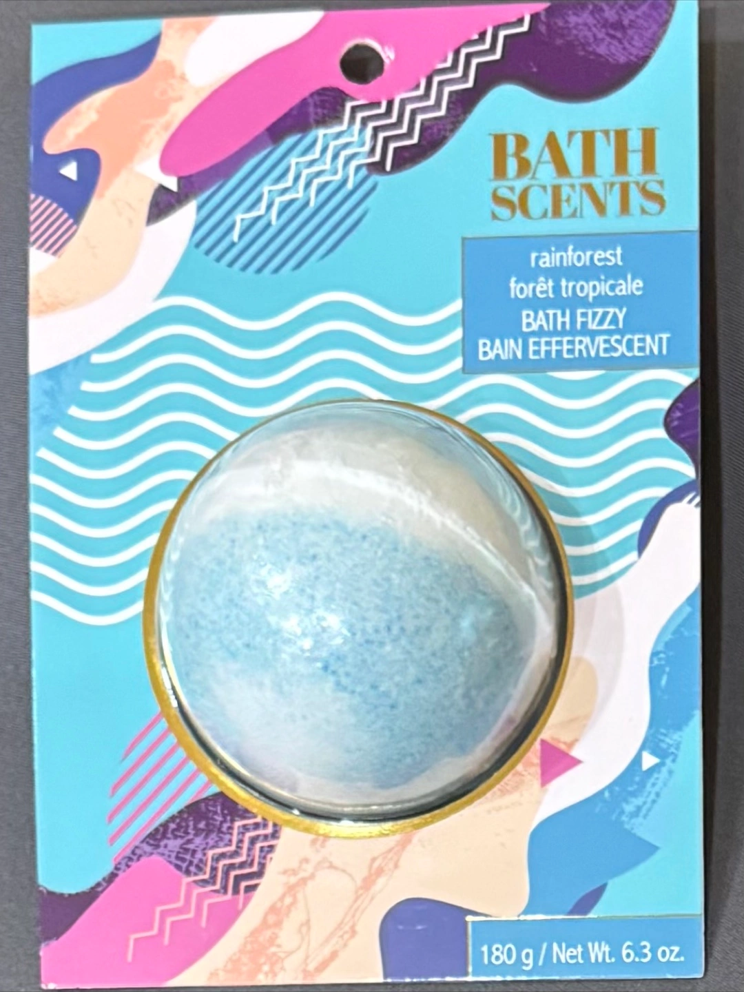 This is a Bath Scents rainforest bath fizzy. It's a bath bomb that will make your bath smell like a rainforest. The net weight is 6.3 oz or 180g