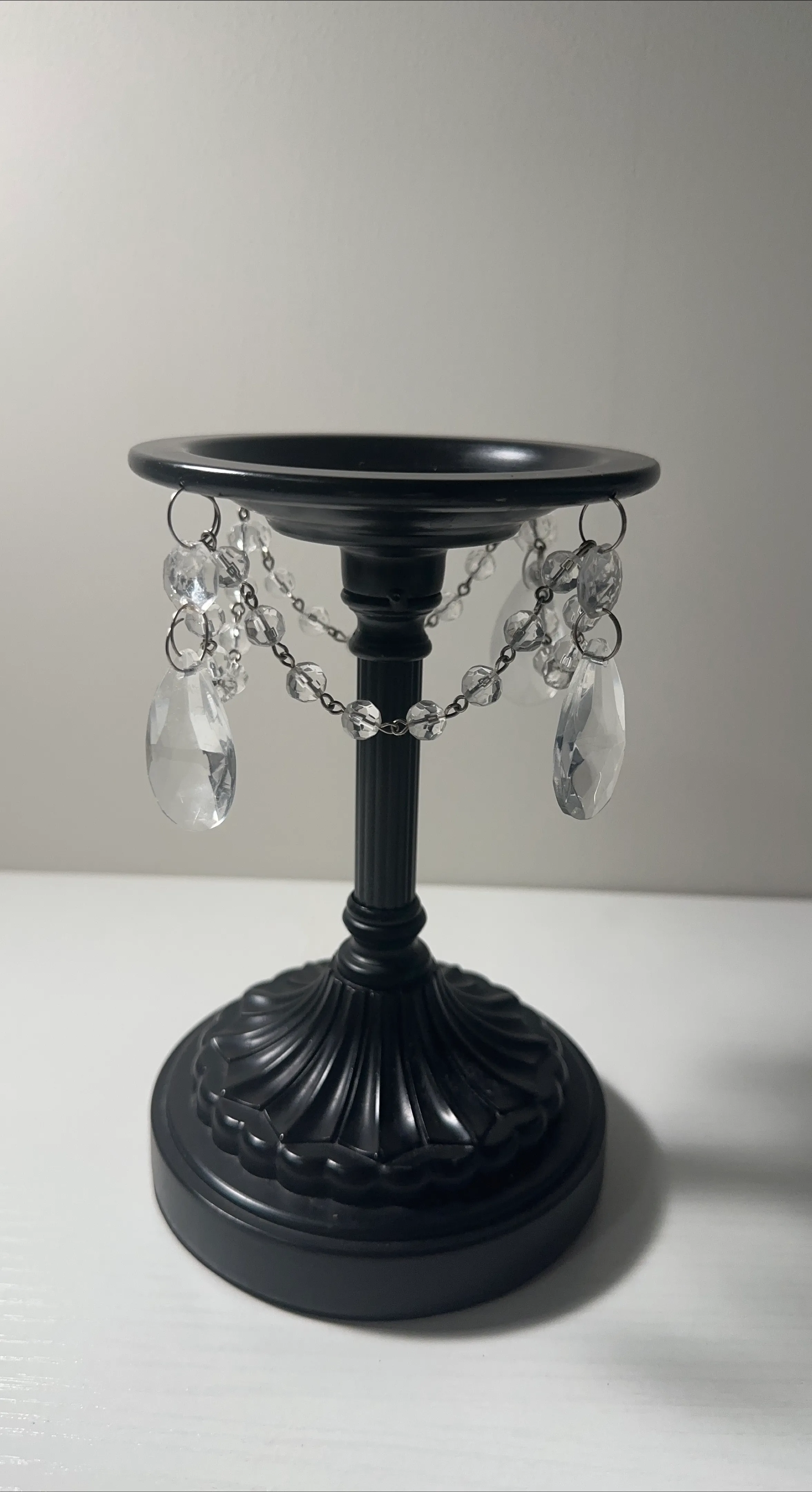 Here's a stylish black candle holder featuring lovely crystal accents! It's a great piece to add a touch of elegance to any room. Perfect for creating a cozy and inviting atmosphere in your home