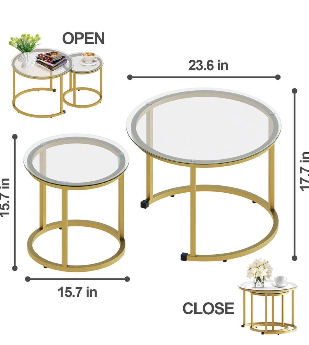1000+🚚Decluttering My Storage – Moving Sale I’m clearing out my storage as we are relocating. ❗️All items are priced at the lowest and fixed price. Serious inquiries only. 📍 Pick up in Scarborough storage — 376 Birchmount Road (Drive-Thru Access) 1. Gold Console Table A sleek and modern gold console table with a glass top and unique open-shelf design. Perfect for an entryway, hallway, or living room. Adds a touch of elegance while keeping the space light and airy. ✔️ Very good condition 2. Set of 2 Gold Coffee Tables Stylish nesting coffee tables with gold frames and glass tops. The round design makes them versatile for small or large spaces — use them together for a layered look or separately as side tables. ✔️ Very good condition Some small details can be missed , but Canadian tire has all needed elements , it’s up to $10, even less Sorry for this inconvenience, I included it to the price Pick-up in Scarborough. Price for all listing and fixed ❤️