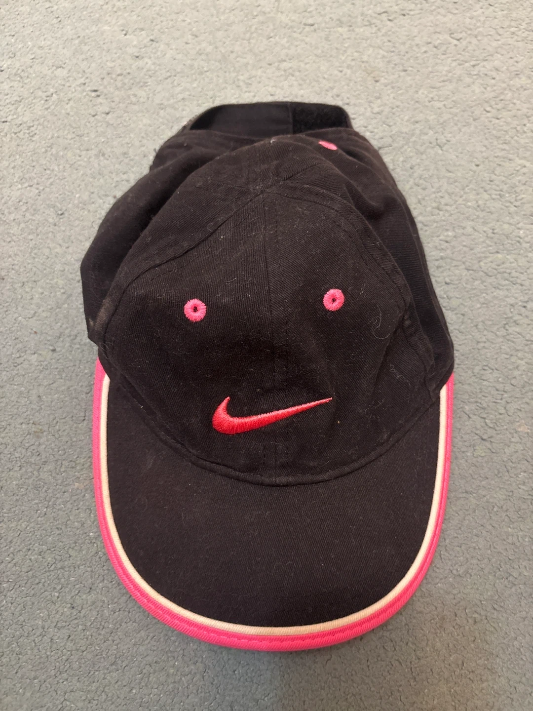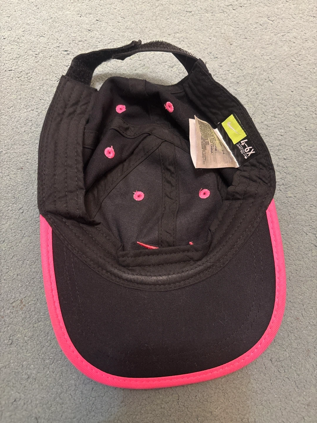 192Selling a cute Nike kids' hat in size 4-6X! It's black with a pink brim and the classic Nike swoosh logo. Perfect for keeping the sun out of your little one's eyes while they play