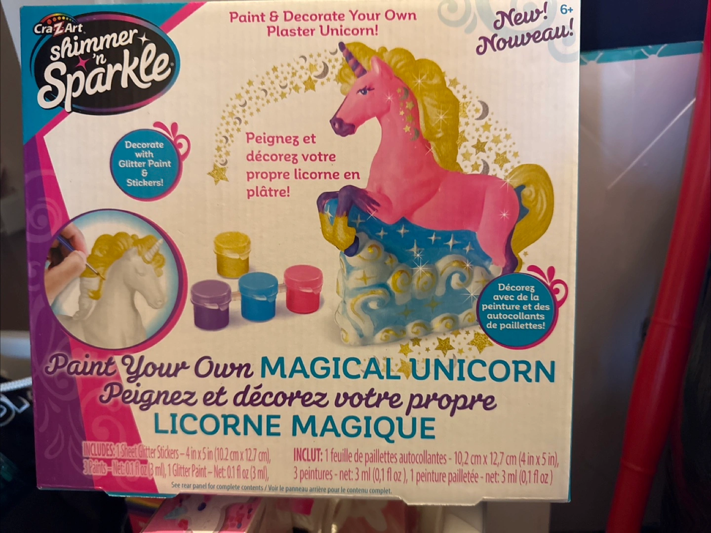 Get creative with this Cra-Z-Art Shimmer 'n Sparkle Paint Your Own Magical Unicorn kit! It's perfect for decorating and painting your own plaster unicorn. Includes glitter paint and stickers to add extra sparkle! Located in Douglasdale or downtown during the week