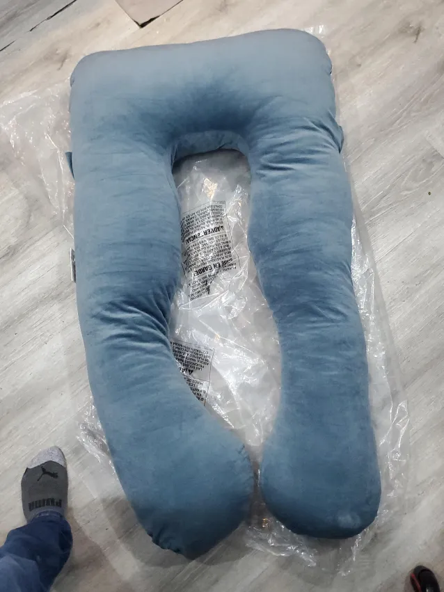 Selling a brand new Leachco Snoogle Total Body Pillow! It's a lifesaver for expecting mothers or anyone who needs extra support while sleeping. The pillow is blue and comes in its original packaging