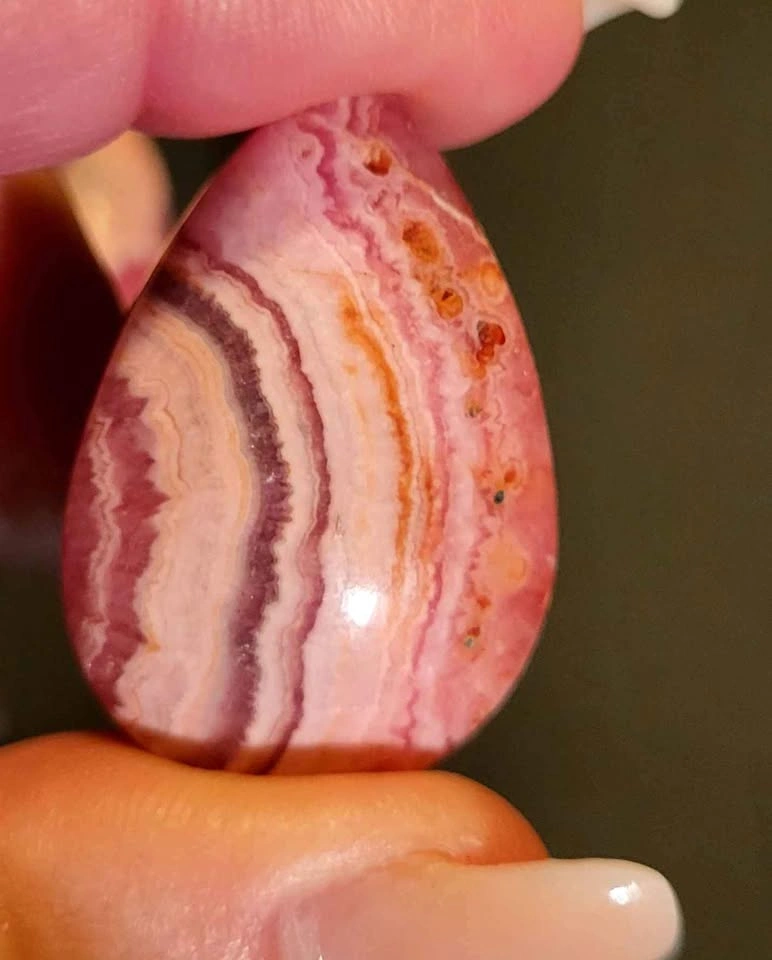 Gorgeous hand cut and polished dark pink Rhodochrosite Cabochons. Many pieces to choose from. If you'd like specific sizes on certain pieces feel free to message with any questions. Pick up is North East Edmonton any weekday after 1pm daily. Weekend pick ups can be arranged. I accept etransfer or cash upon pick up. I do not hold any items without payment in full and a scheduled pick up date and time set. Otherwise everything I sell is fcfs. Price is firm and non negotiable. Price is per piece and price of each piece is different so please ask. I do not give discounts as I am not a store. Everything I sell is already 50% to 70% lower than any retail price. Any questions that I have not answered here, please message and ask.
