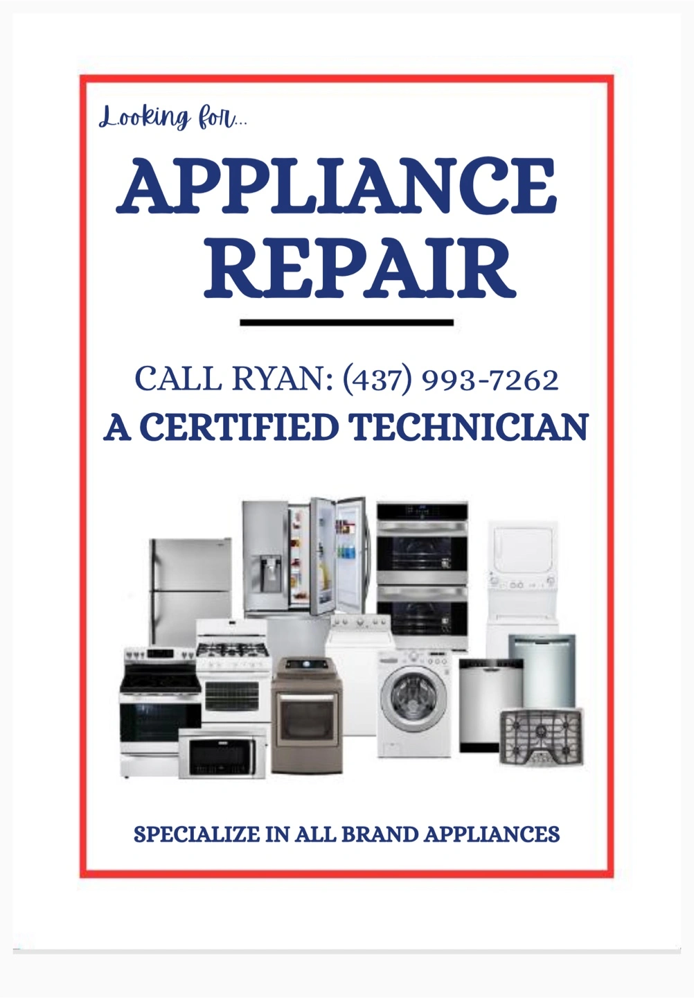 Buy & SellAppliance Repair ServicesAppliance Repair Services$75Looking for appliance repair? Call Ryan, a certified technician, at (437) 993-7262. Specializing in all brand appliancesConditionLike newWHERE TO MEETDowntownView MapSELLERRyanThorold250 reviews1 chats·0 favorites·26 views