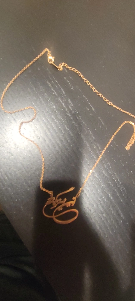 A delicate gold-coloured necklace with a personalized name design. It's in great condition and ready to add a unique touch to your style!