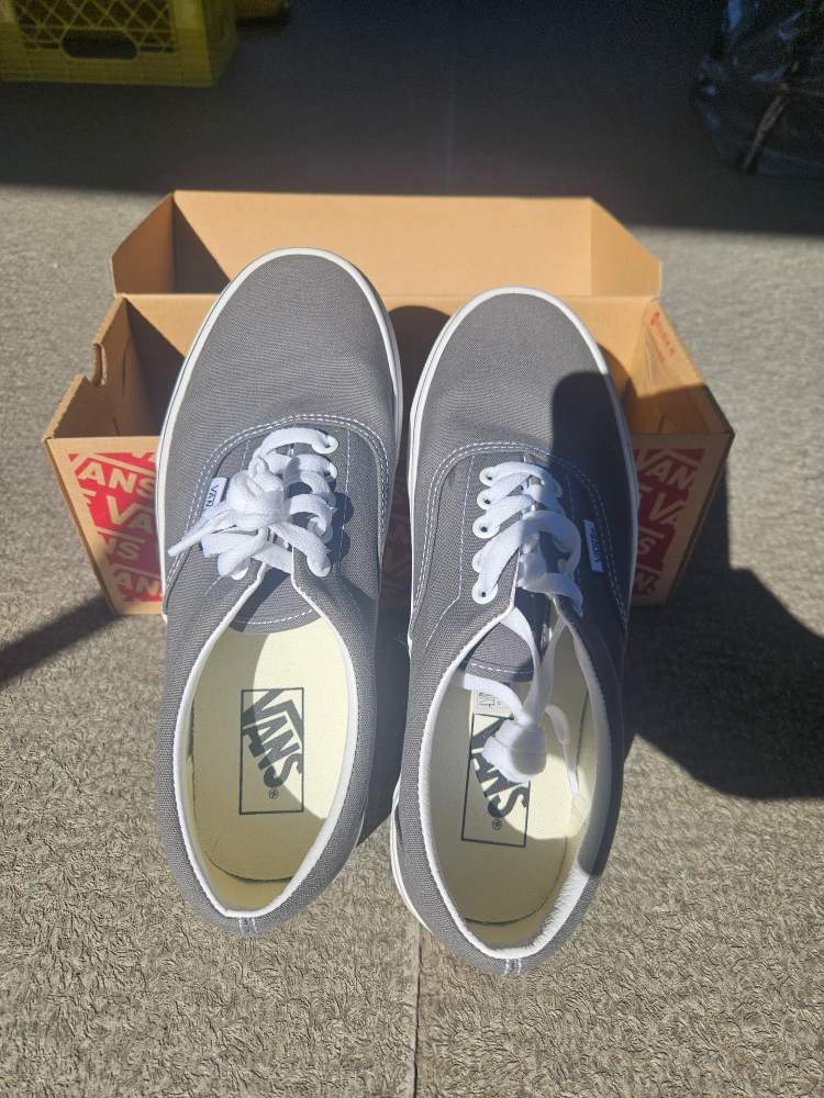 Selling a pair of Vans shoes in pewter/white, size 8! They come with the original box. These classic sneakers are ready for a new home! No longer my style.