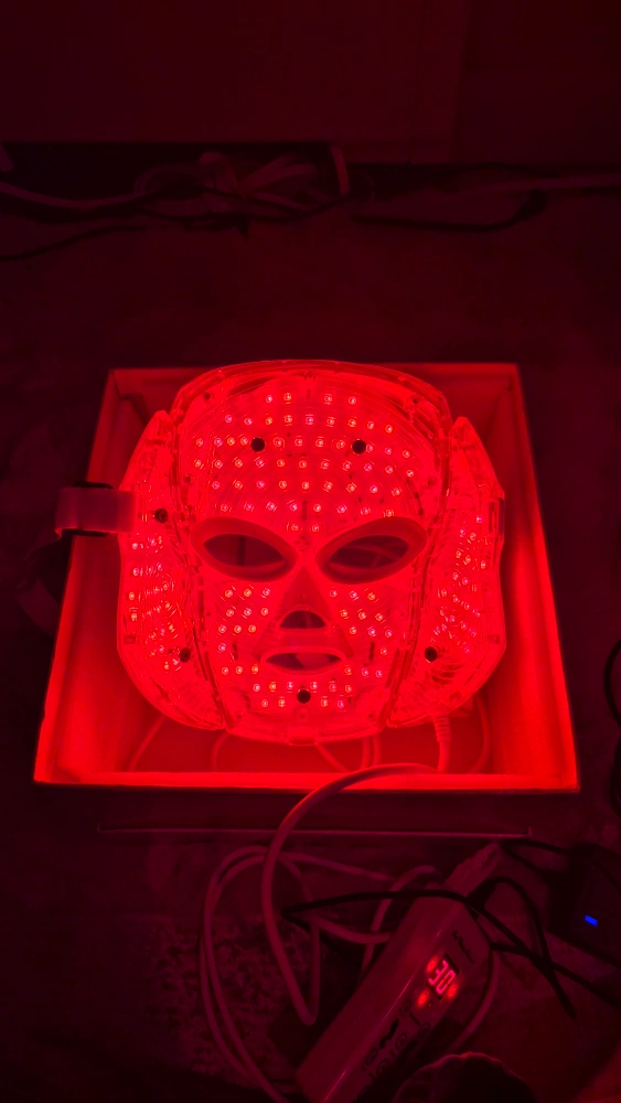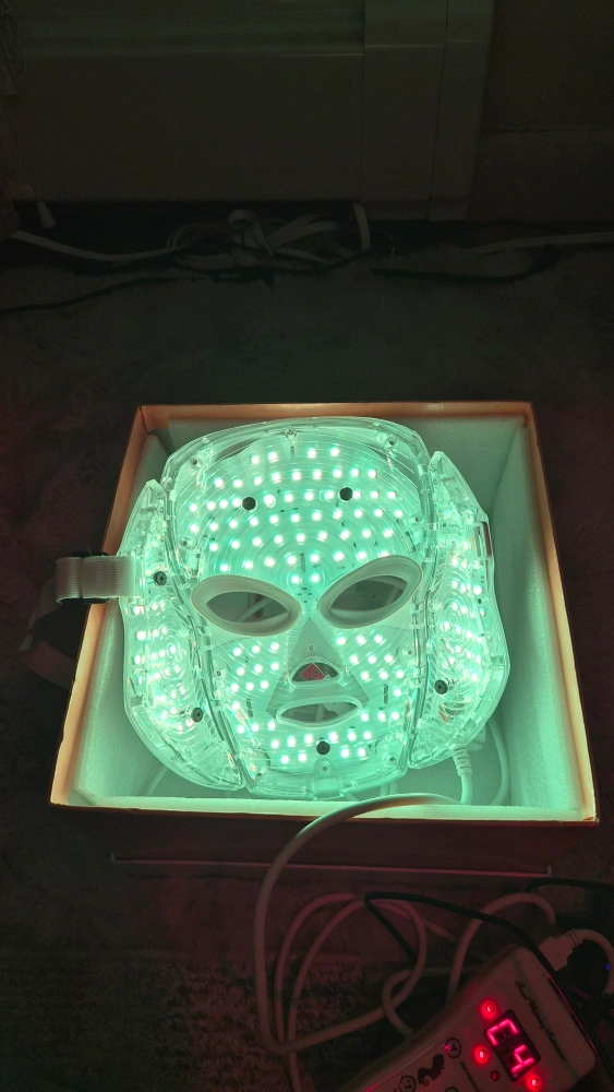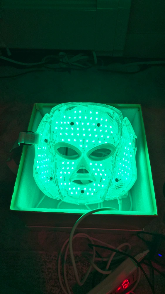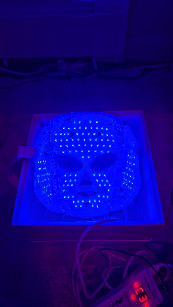 This is an LED facial mask for light therapy. It comes with the box and all the included components. It's in great condition, ready for a new home!