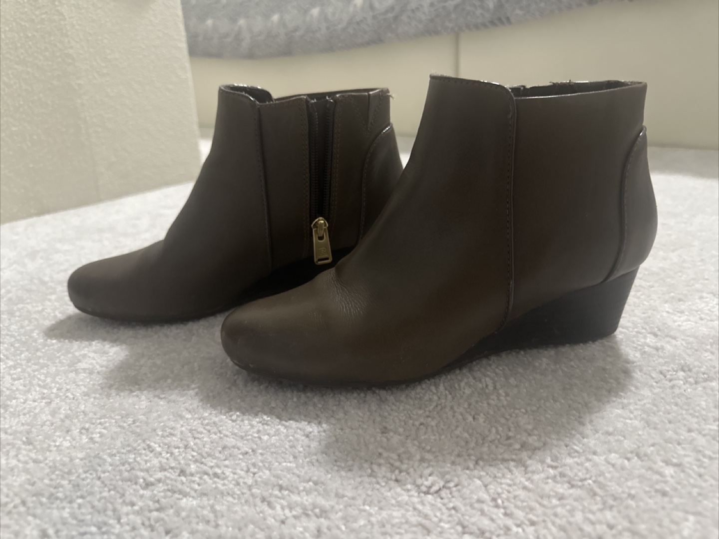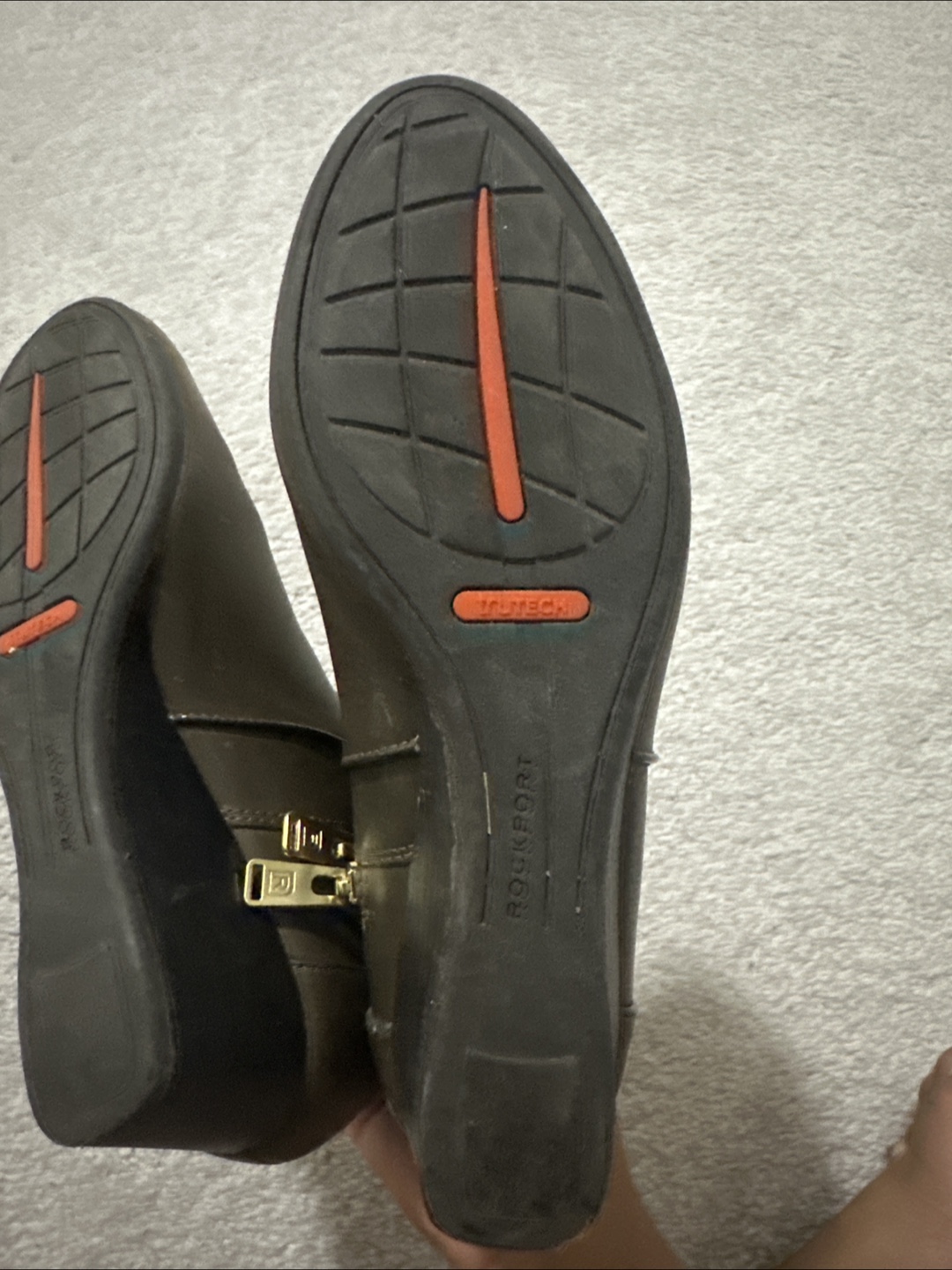 These Rockport ankle boots are a stylish and comfortable addition to any wardrobe! They feature a sleek brown leather exterior and a convenient zipper closure. The size is a women's 7. They have some signs of wear but are still in good condition and ready for a new home
