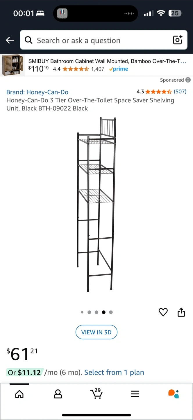 Looking to maximize your bathroom space? This Honey-Can-Do 3-Tier Over-The-Toilet Space Saver Shelving Unit in black is just what you need! It's a great way to add extra storage without taking up valuable floor space. Originally, it retailed for $61