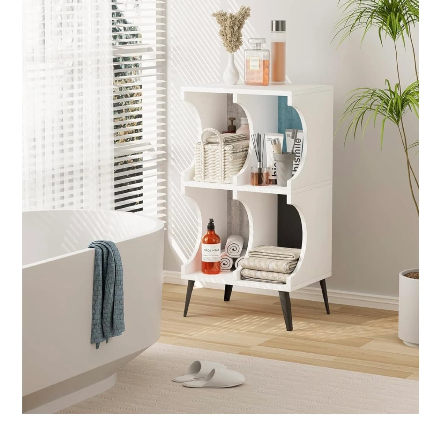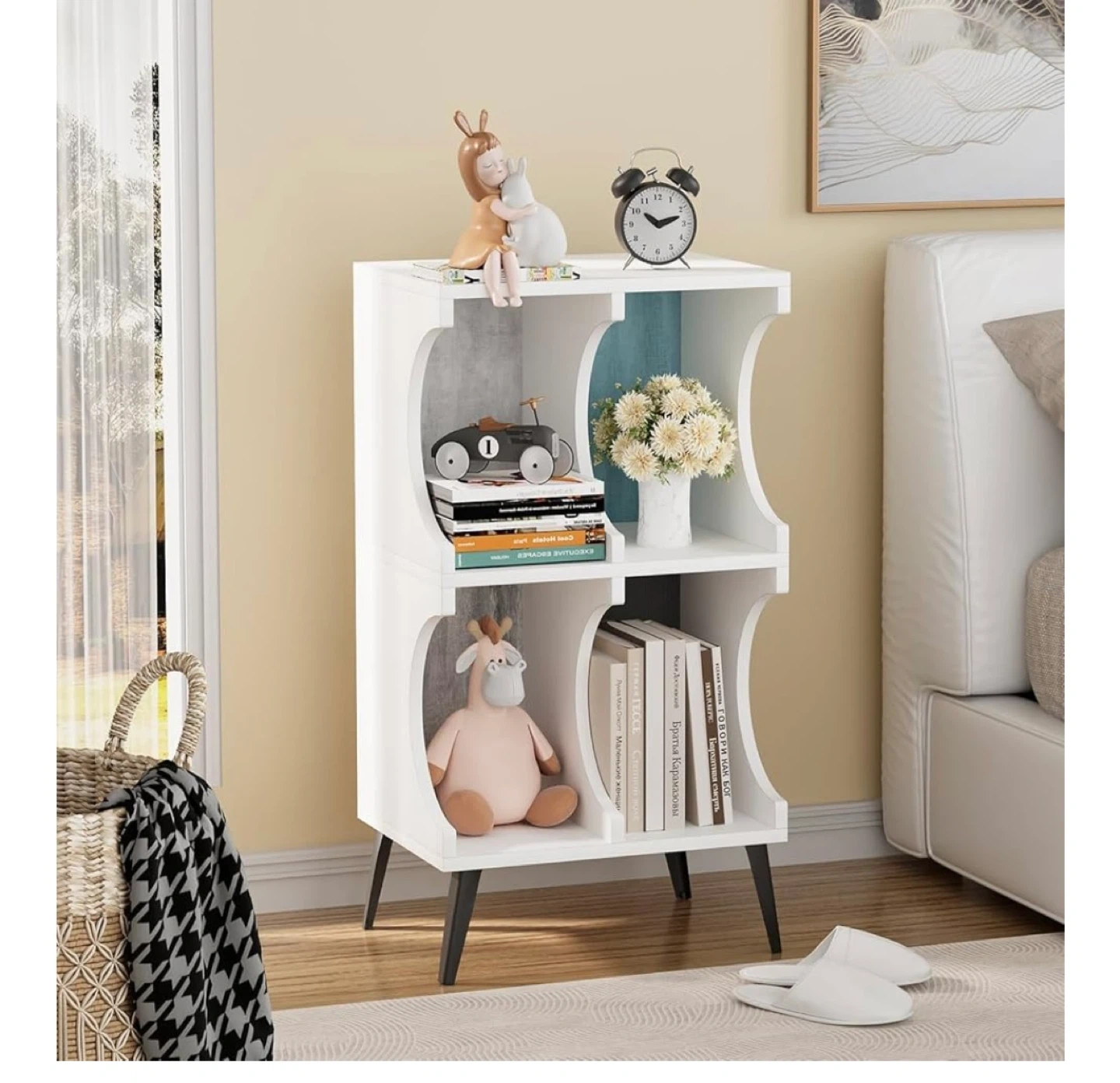 This multi-functional cabinet is perfect for books, toys, stationeries, plants, albums, or even an alarm clock! It has a modern design with a white finish and stands on black legs. The dimensions are approximately 29.9 inches (76 cm) tall, 15.7 inches (40 cm) wide, and 11.8 inches (30 cm) deep. It's a great way to add some stylish storage to any room in your home