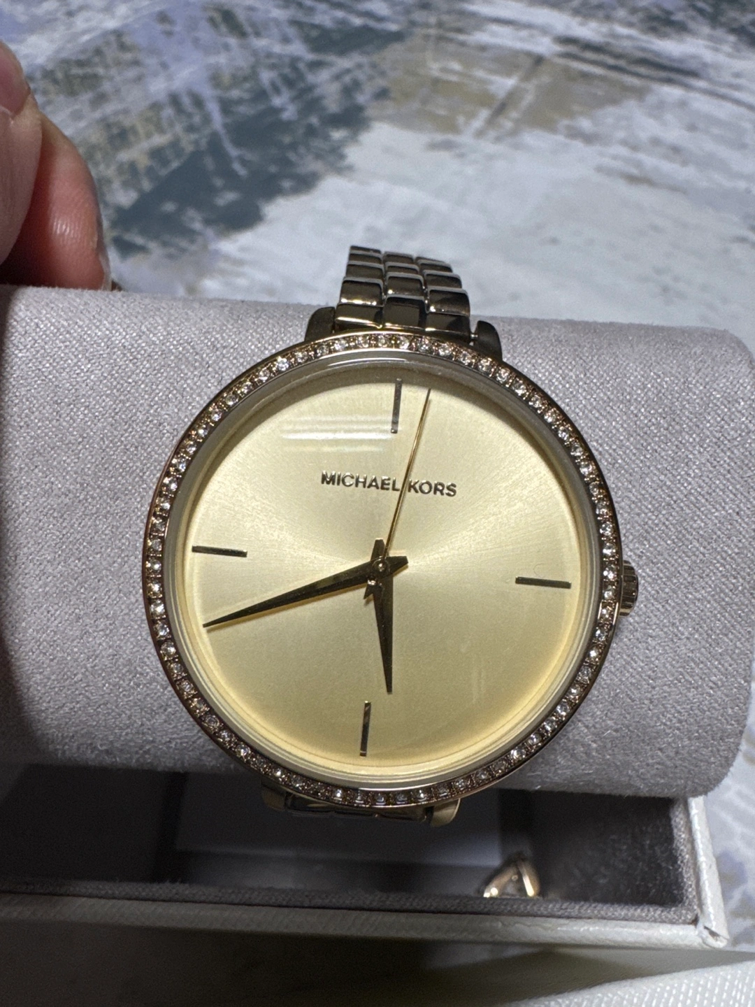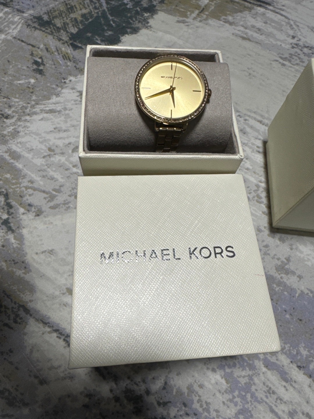Selling a beautiful ladies Michael Kors watch in gold. It comes with the original box and is in great condition! The watch features a gold-tone finish and a classic design that would make a lovely addition to any outfit
