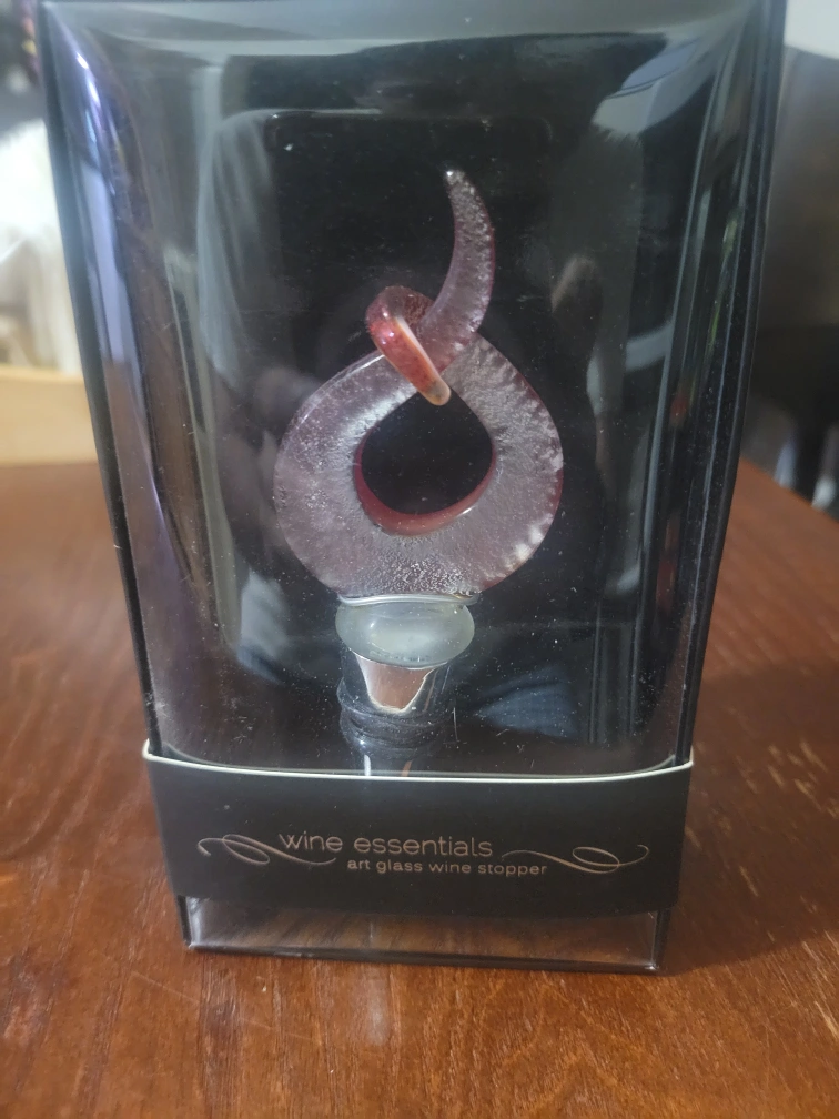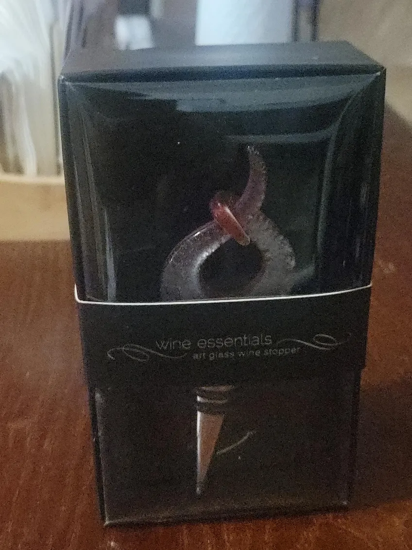 I'm selling a brand new Wine Essentials art glass wine stopper! It comes in its original box and is ready to add a touch of elegance to your wine bottles. Perfect for gifting or for your own home bar