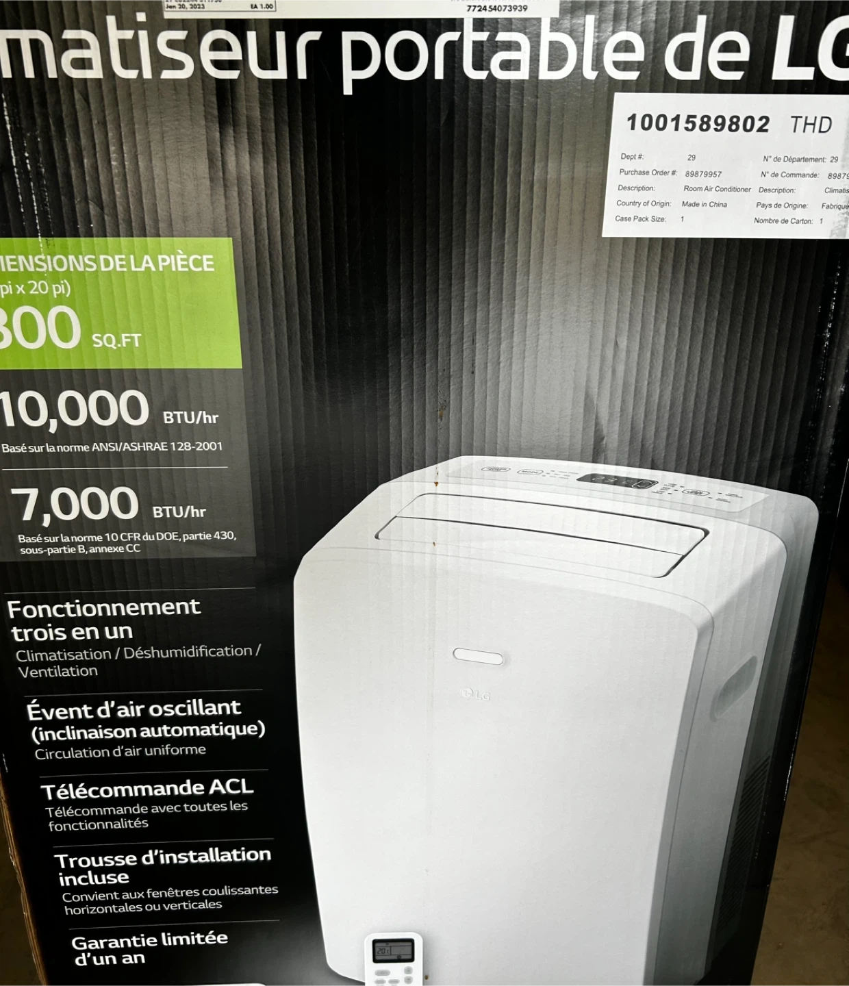 portable LG air conditioner 10,000 BTU