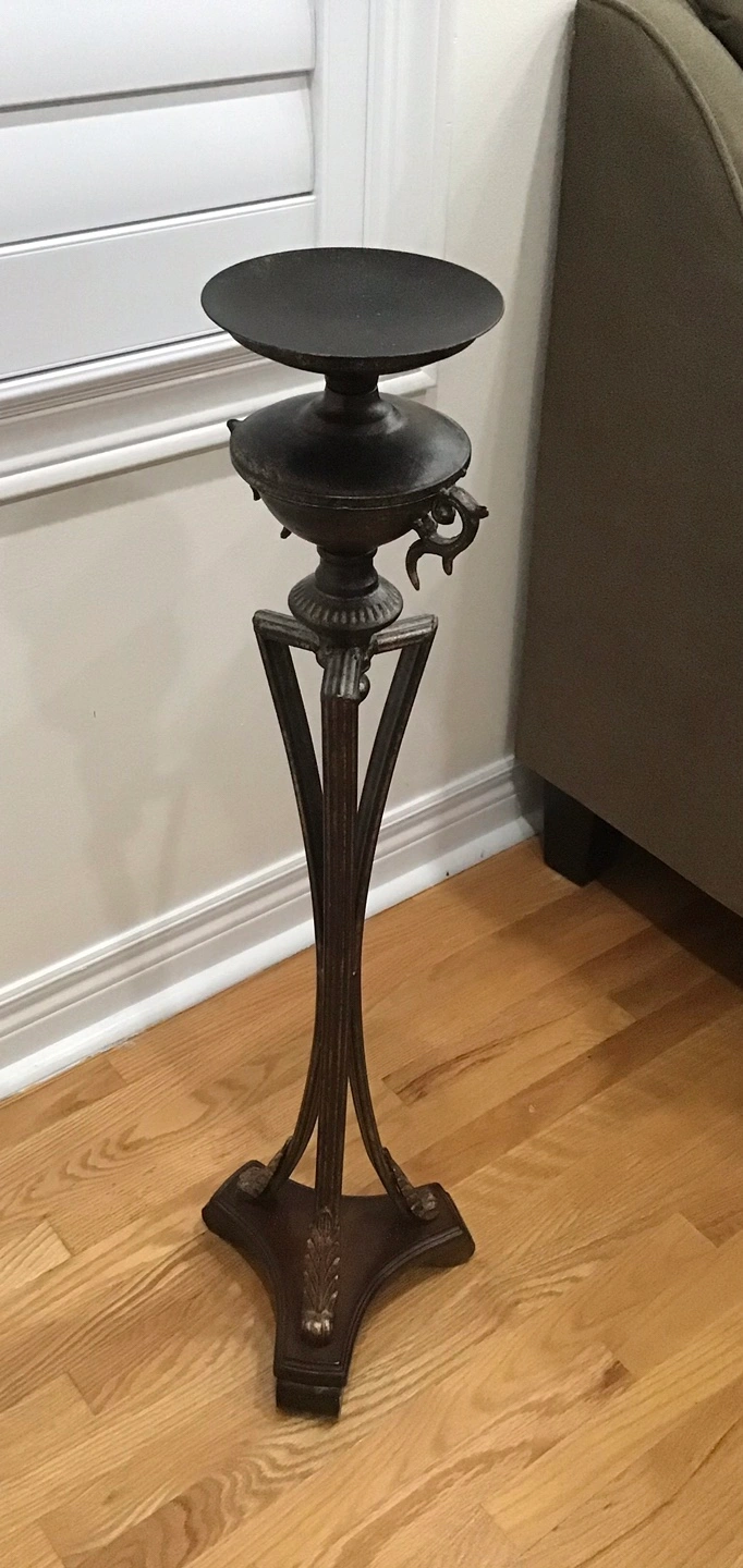 Selling a metal candle holder stand. It's about 33 inches tall and in great shape! Perfect for adding a touch of elegance to any room