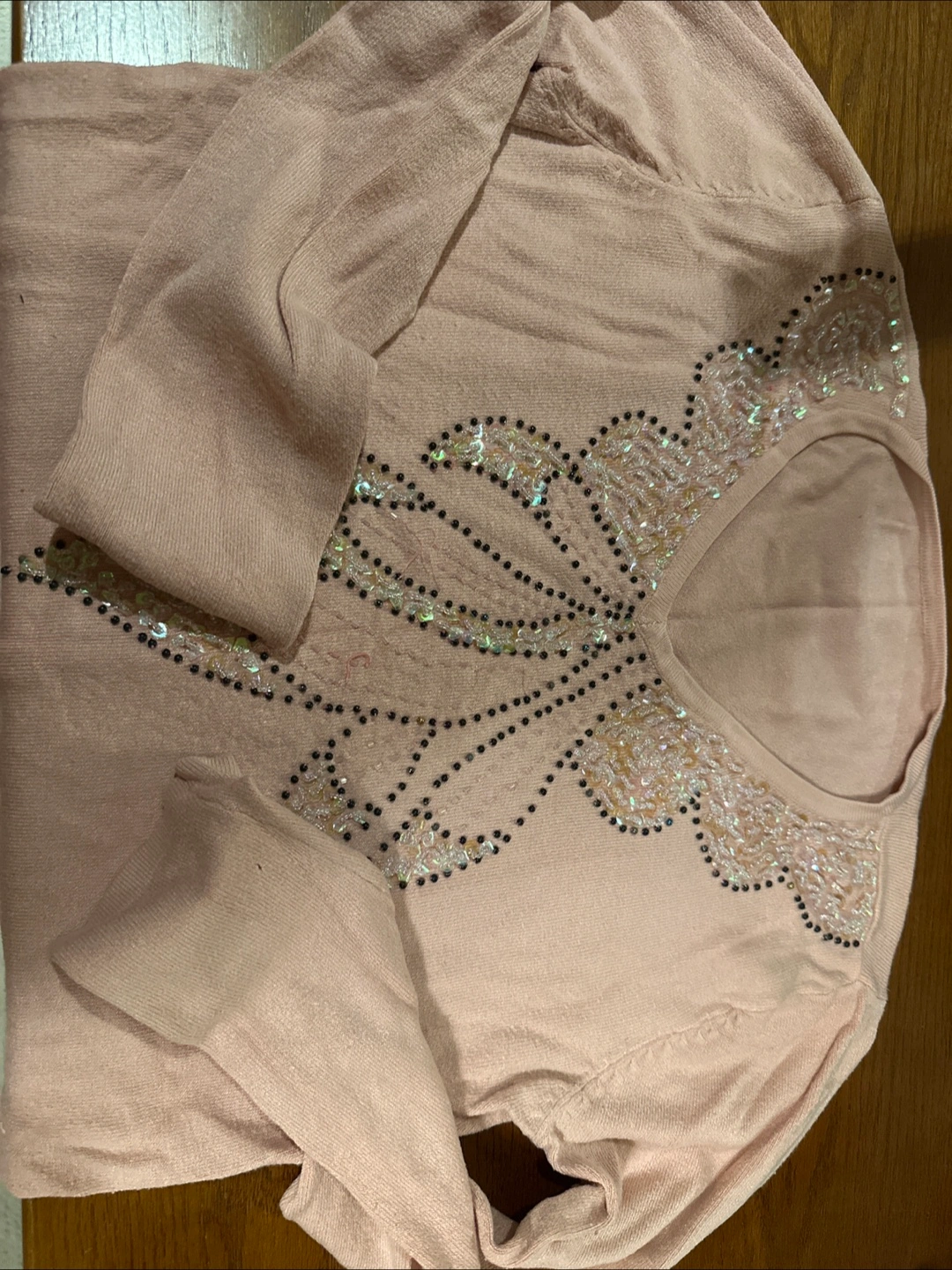 486Give away a lovely pink sweater with delicate embellishments. It’s in great condition and ready for a new home!