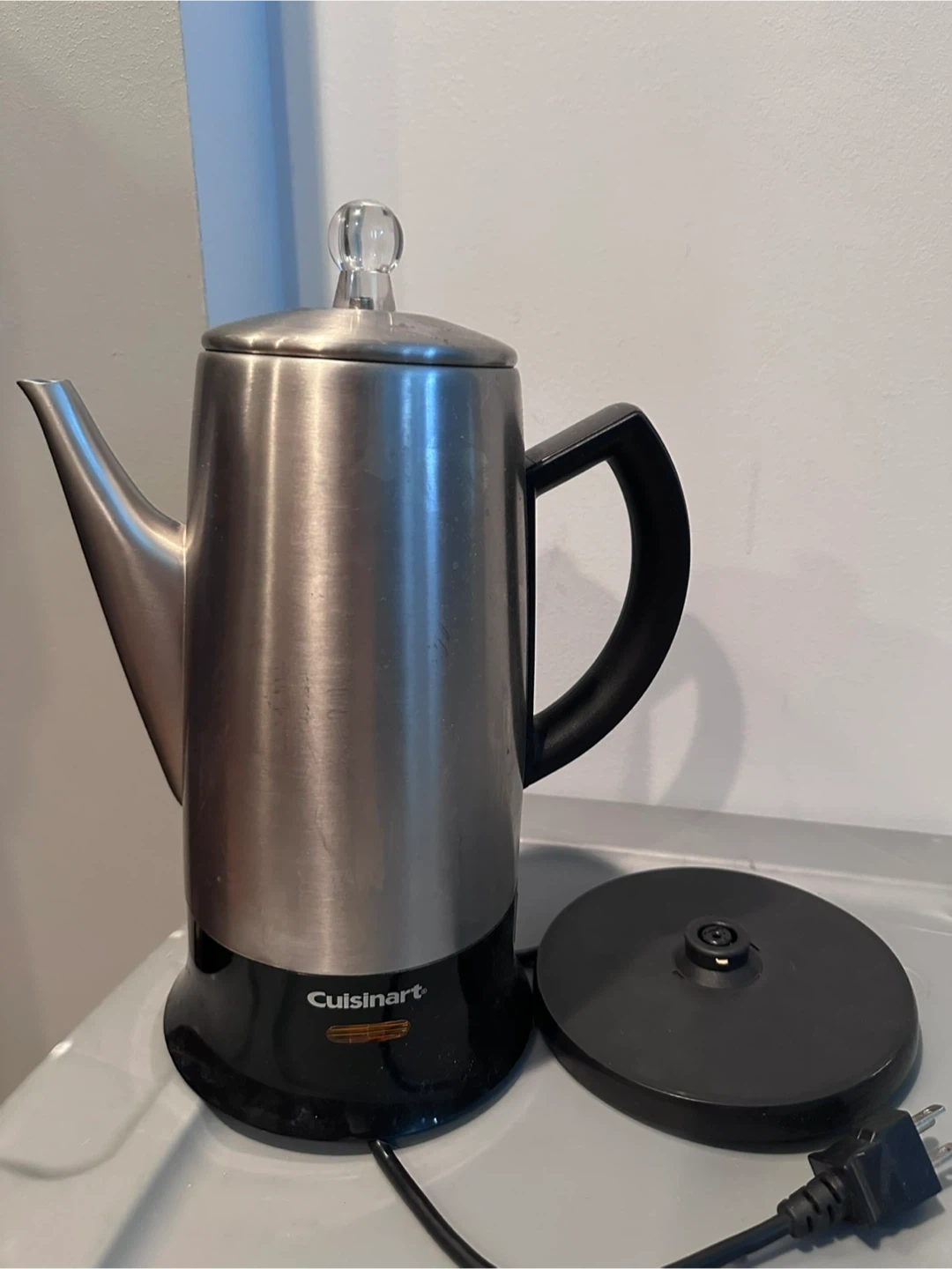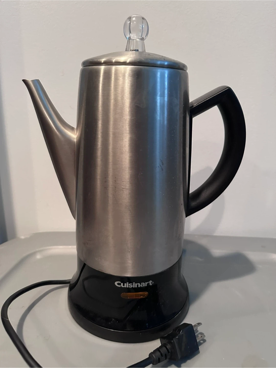Selling a Cuisinart electric percolator coffee maker. It's in good used condition and ready to make some delicious coffee. A classic addition to any kitchen!
