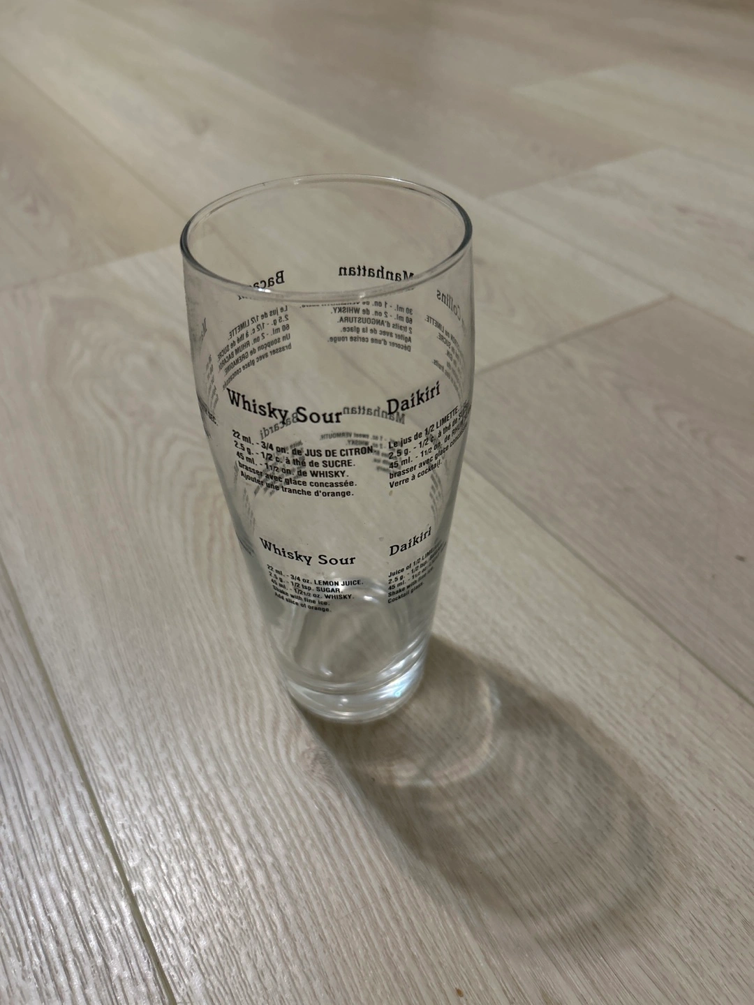 Here's a cool cocktail recipe glass! It features recipes for a Whisky Sour and a Daikiri right on the glass itself. Perfect for your home bar or a fun gift for a cocktail enthusiast