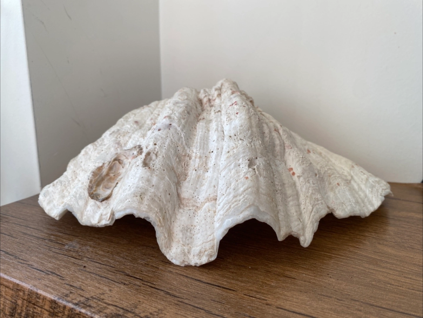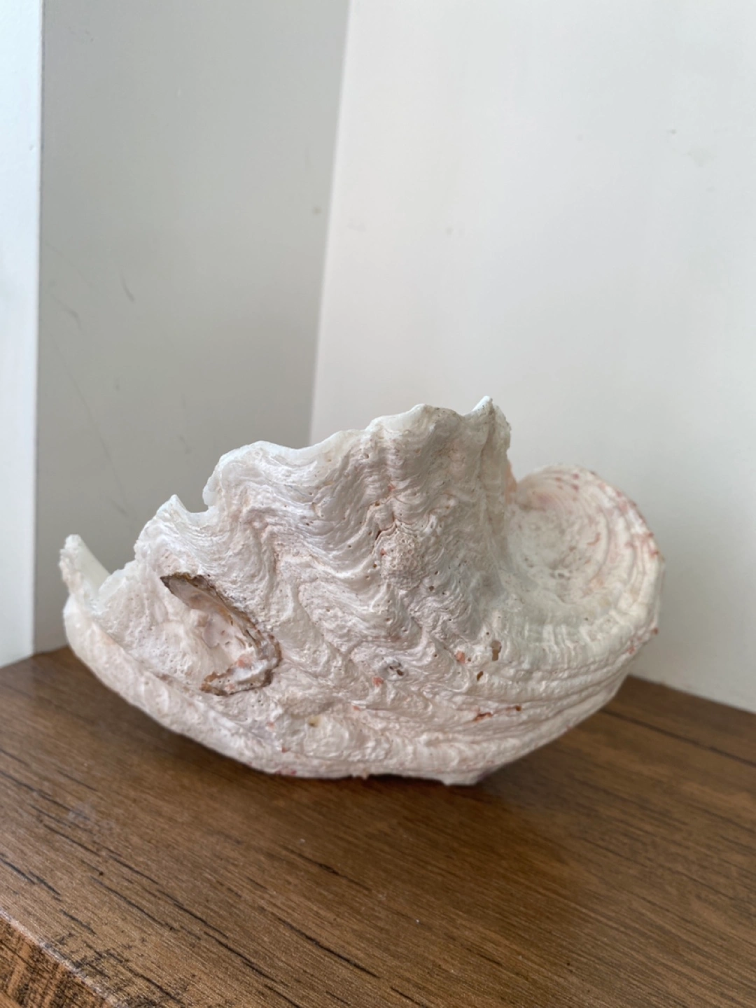 979Selling a giant clam shell, perfect for decoration! It's a unique piece that would look great in any home. It has a beautiful, natural texture and a lovely off-white colour. Add a touch of the ocean to your space!