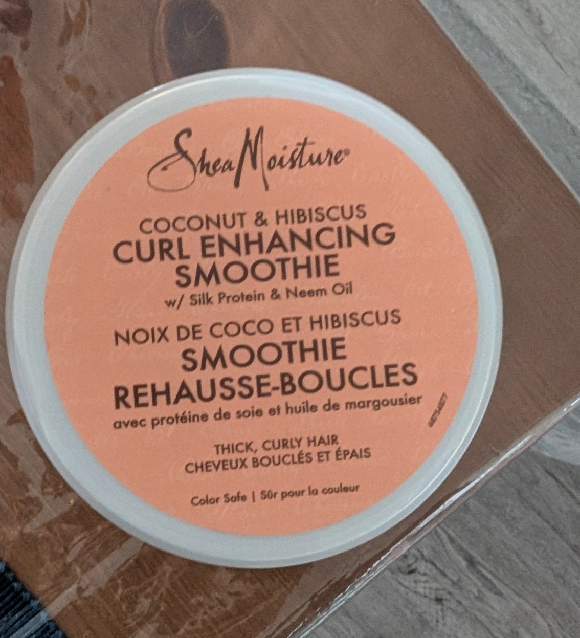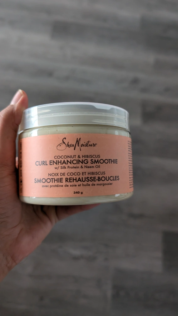 I'm selling a Shea Moisture Coconut & Hibiscus Curl Enhancing Smoothie! It's designed for thick, curly hair and is colour safe. This smoothie contains silk protein and neem oil, and it comes in a 340g container