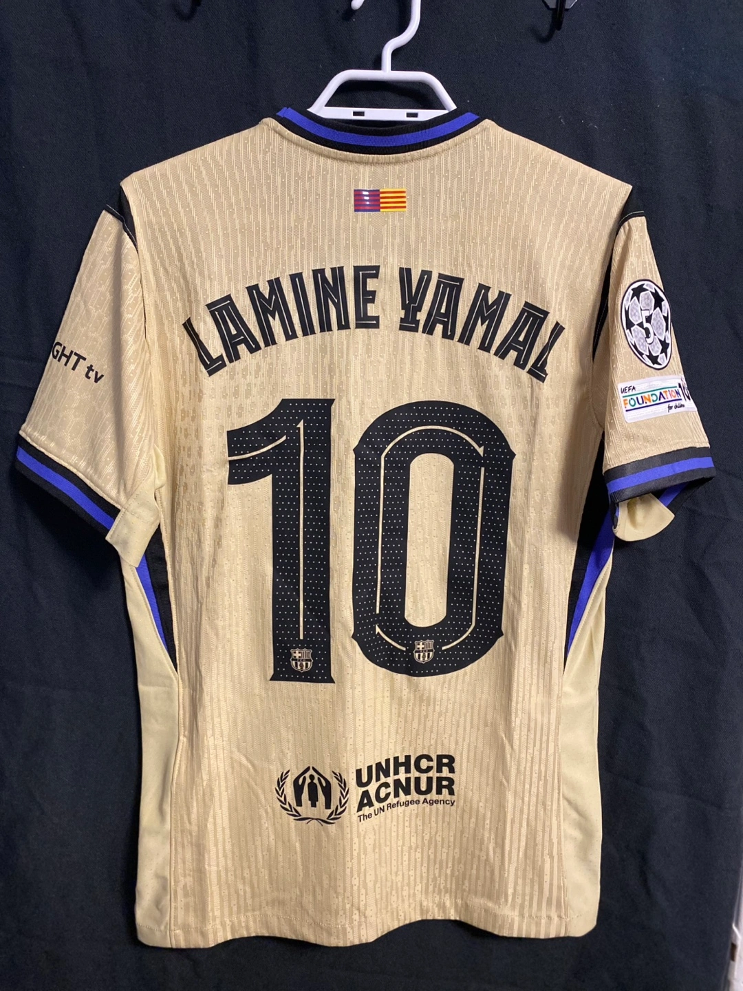 Lamine Yamal Jersey Men's Match away FC Barcelona x Kobe Bryant for the 25/26 Season. With this Match version jersey, you're wearing the same model as the players on the pitch. Size: M Color: Yellow Heat-transfer crest 100% polyester Machine washable