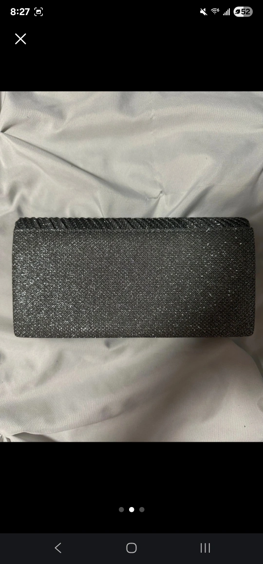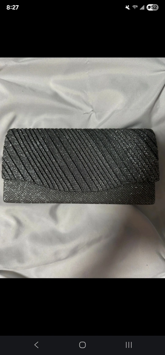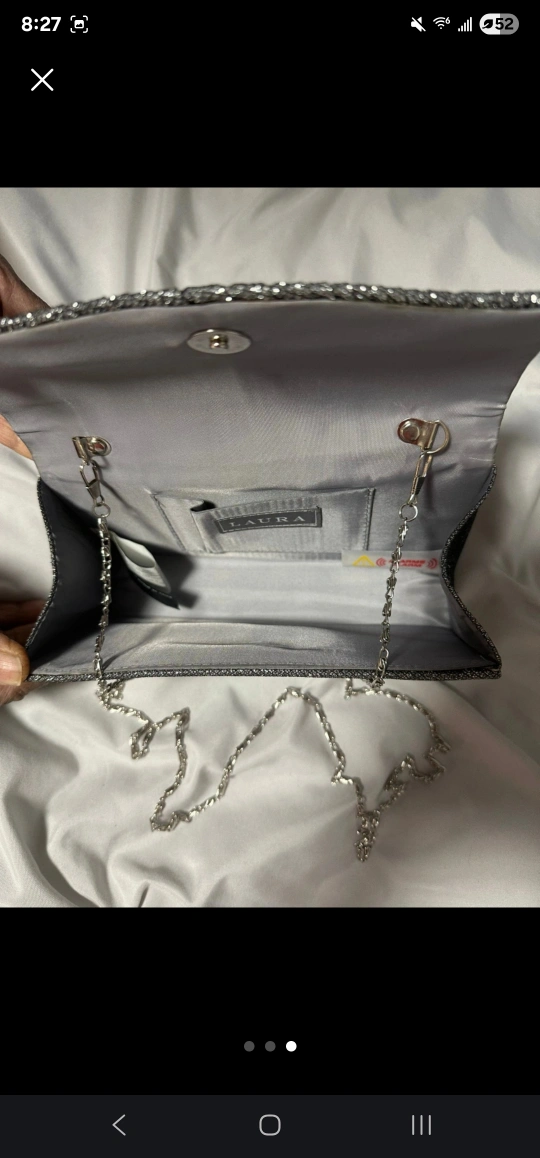 404Here's a stylish silver evening clutch from Laura. It comes with a chain strap for easy carrying