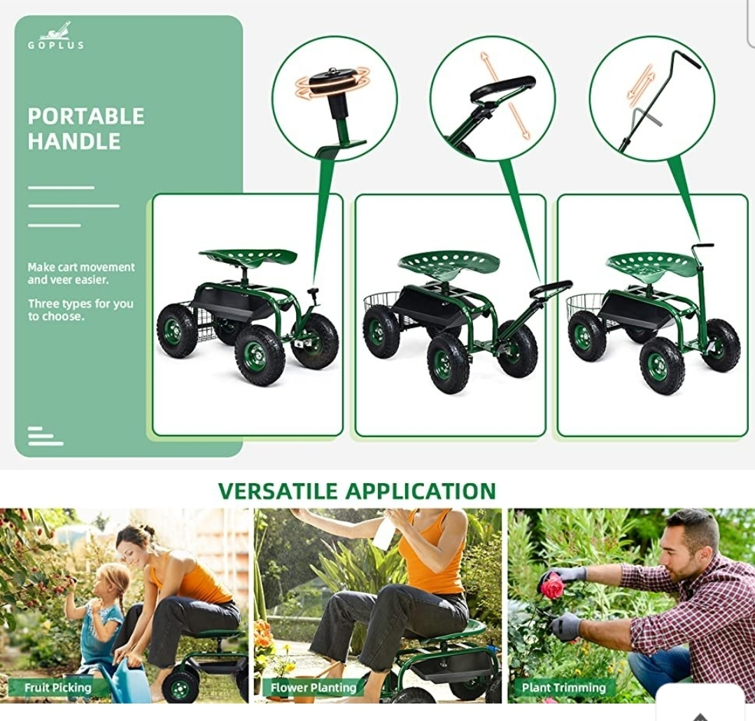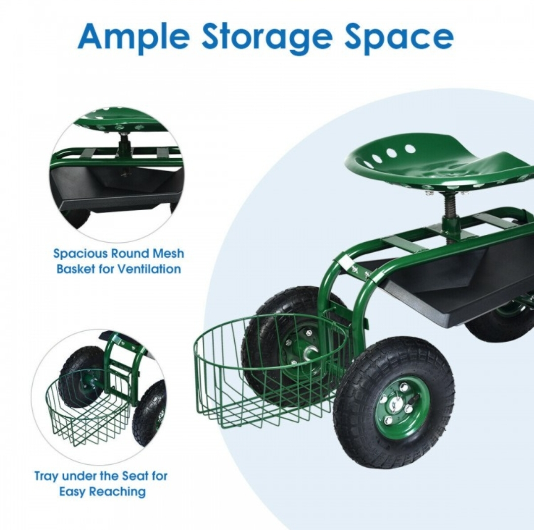 π± Heavy-Duty Garden Cart with Tools Tray & 360Β° Swivel Seat β $119