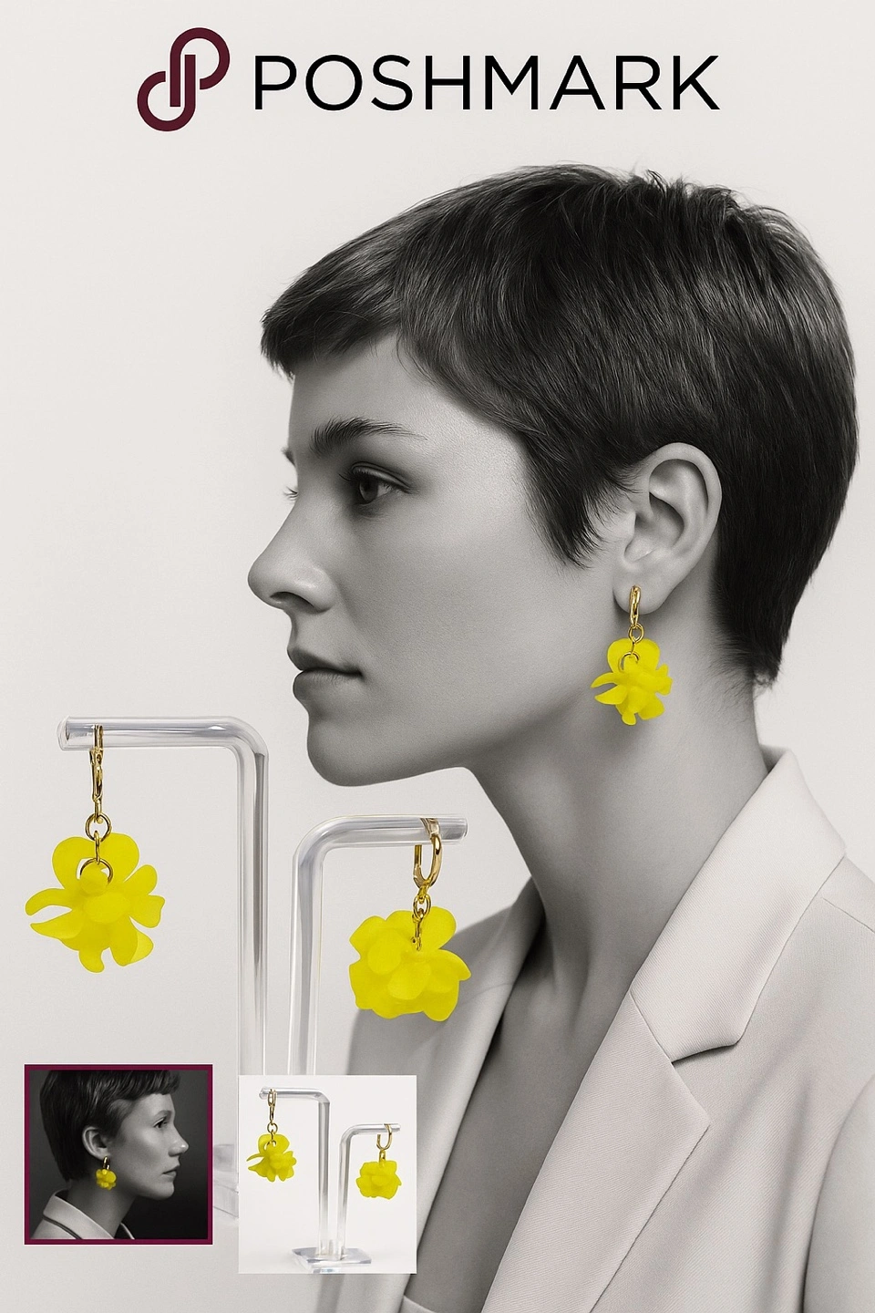 65These are a pair of cute yellow flower drop earrings. They would be great for adding a pop of colour to your outfit!