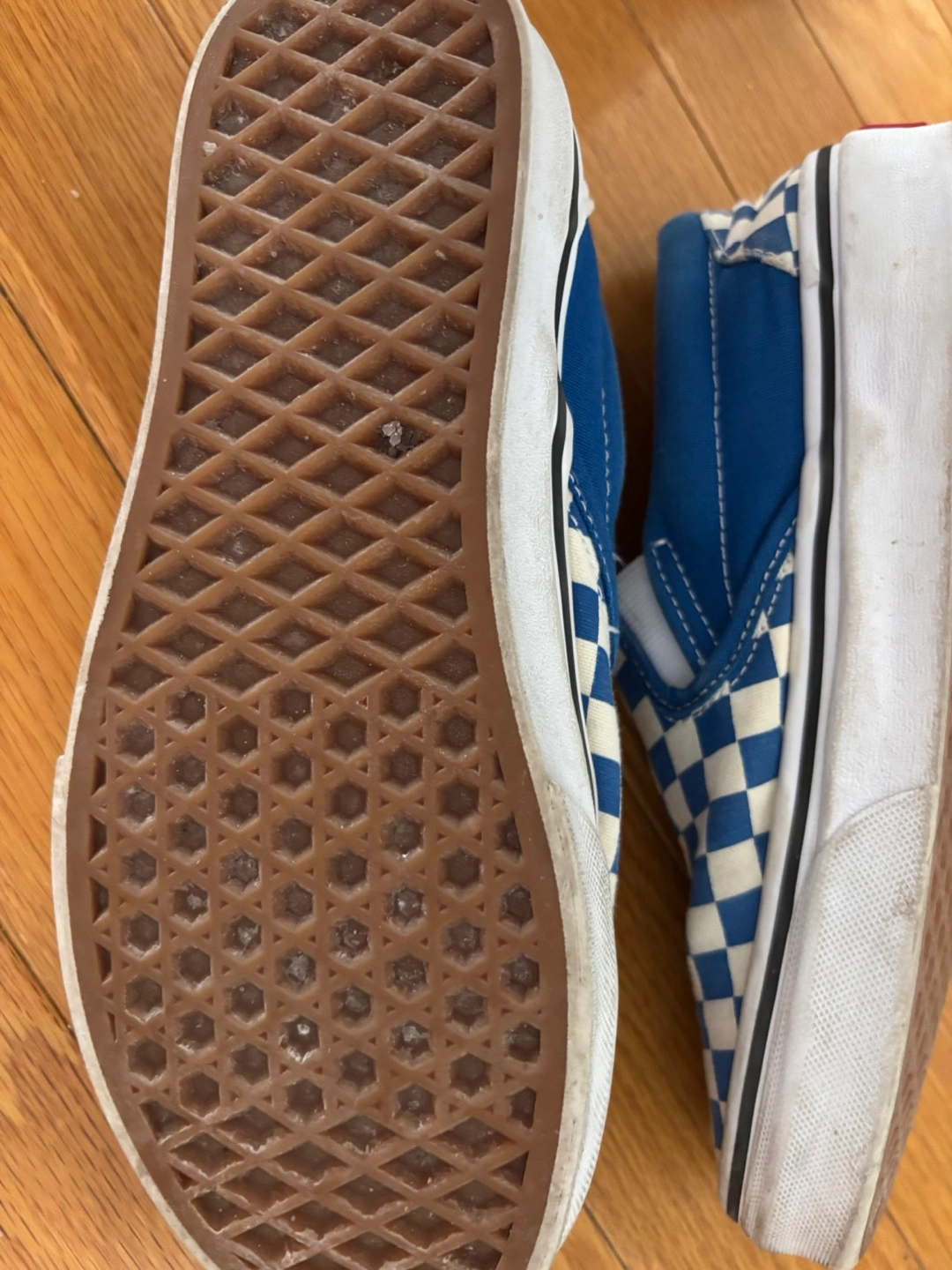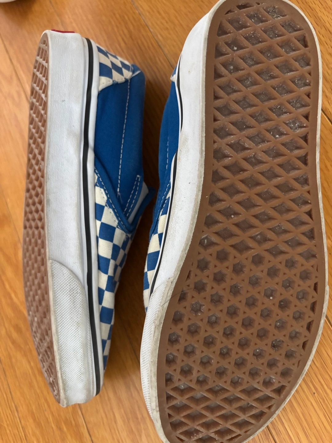 74Selling a pair of Vans Slip-On sneakers in a cool blue and white checkered pattern. They're in great shape and ready for a new home. The size is a US 6.5. These are a classic style that goes with just about anything!