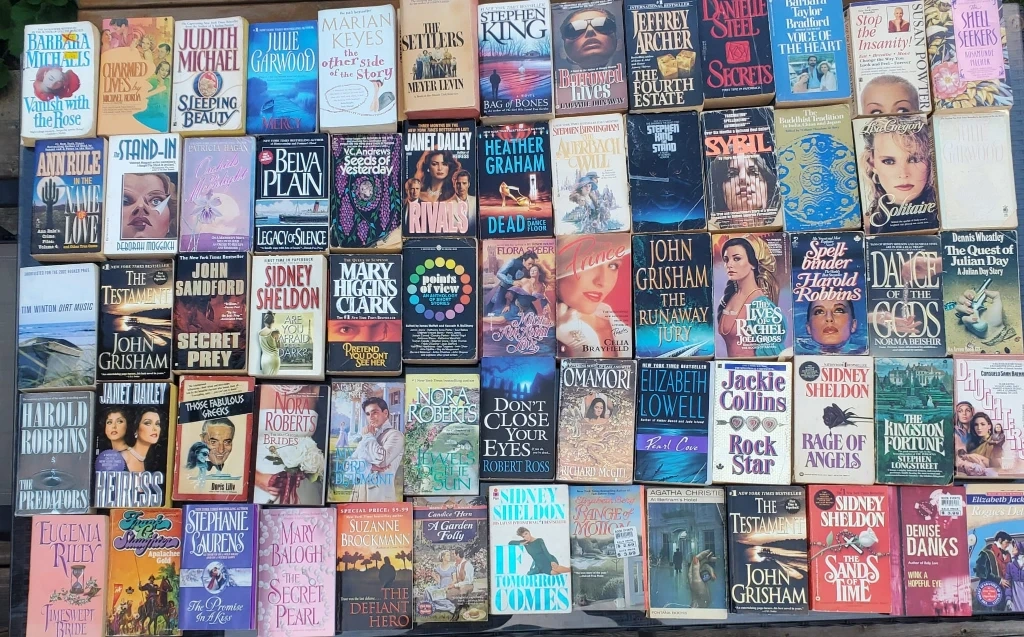 Selling a collection of mixed books, including novels, romance, and thrillers. There's something for everyone! Titles include James Patterson, Agatha Christie, Sidney Sheldon, and more. Perfect for a summer read or stocking up your library