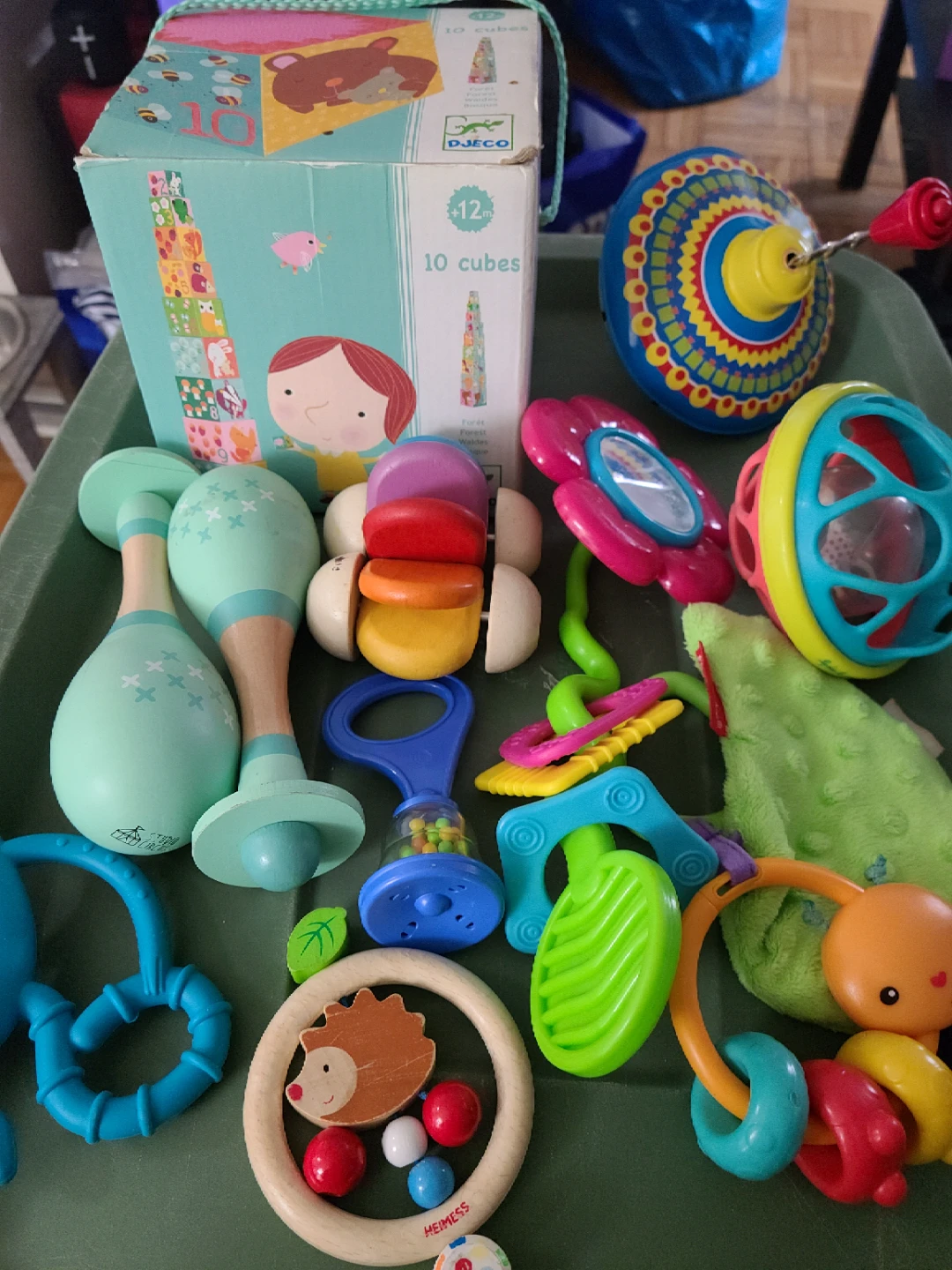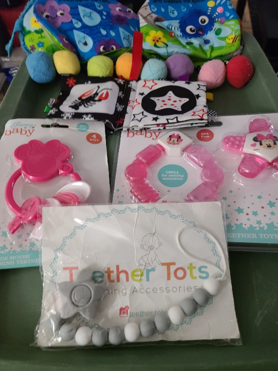 Selling a bundle of baby toys in great condition! Includes soft plush toys, teethers, and some Disney Baby teethers still in their original packaging. Perfect for little ones!