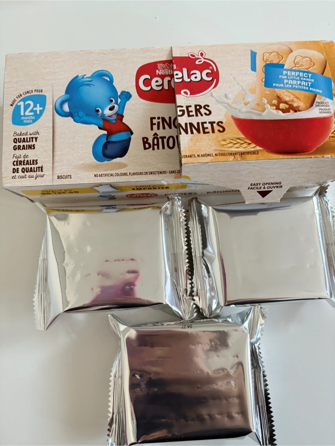 Free Nestle Cerelac Fingers Batonnet biscuits, perfect for little hands! These biscuits are baked with quality grains and are suitable for babies 12+ months. Expiry Date: 2026 July 31