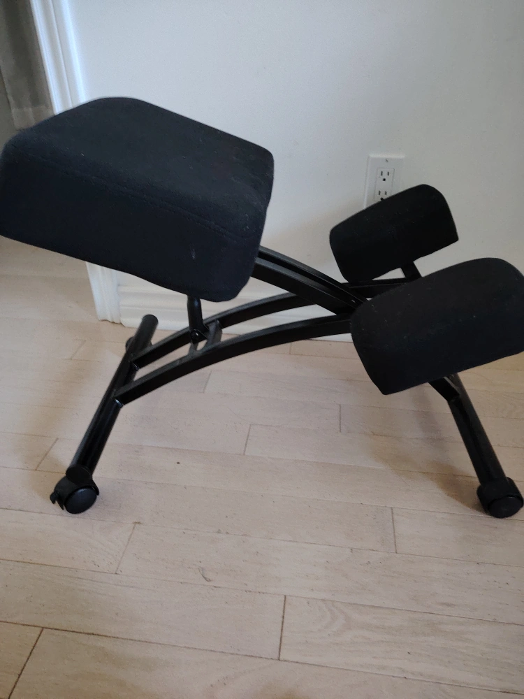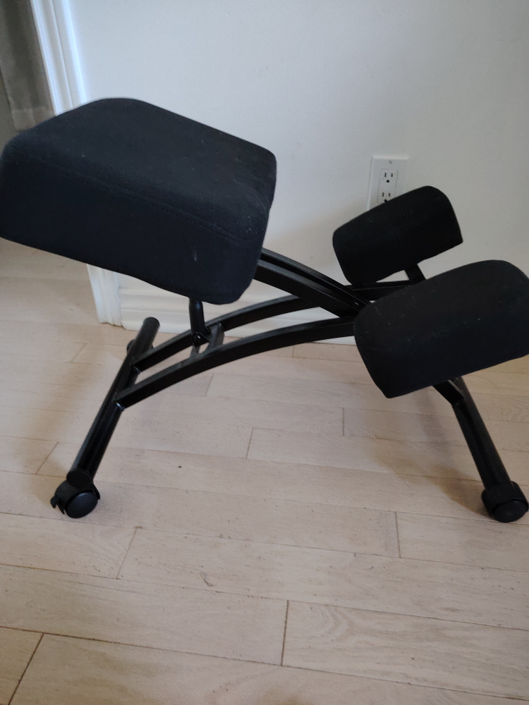 Looking to improve your posture while working from home? This kneeling chair might be just what you need! It's designed to help you sit upright and reduce strain on your back. The chair is in great shape ready for a new home. It features a comfortable padded seat and knee rests, and the height is adjustable so you can find the perfect fit for your desk. It also has wheels!original $179,Cash only meet up at Erin mill town center Mississauga.