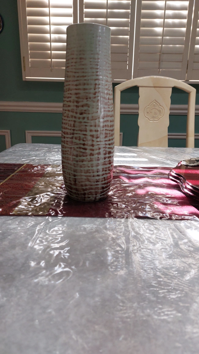 Beige and brown hand made, in Poland. 11.5" tall Mouth 3" wide Base 3.25" wide