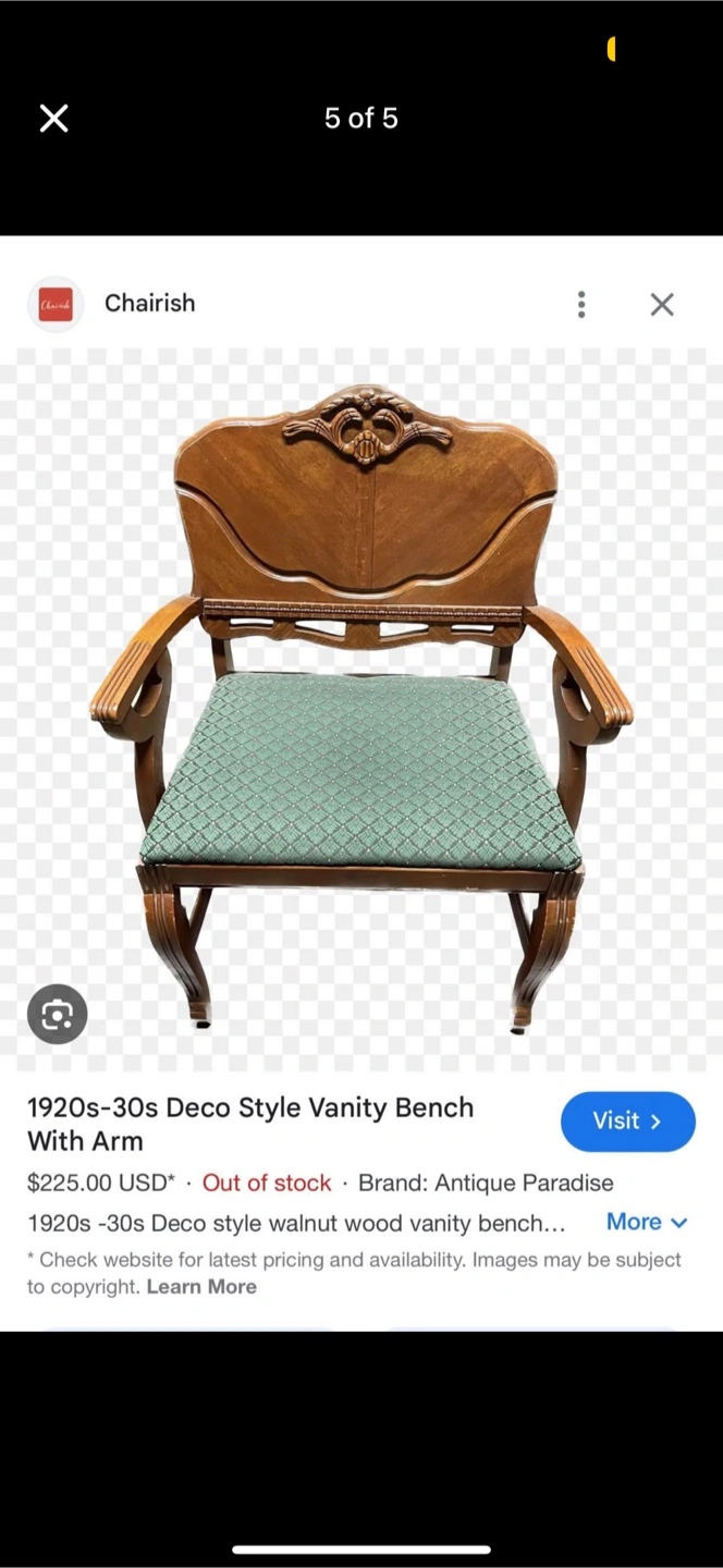 Selling my 1920s-30s Deco style walnut wood vanity bench.