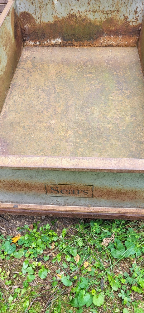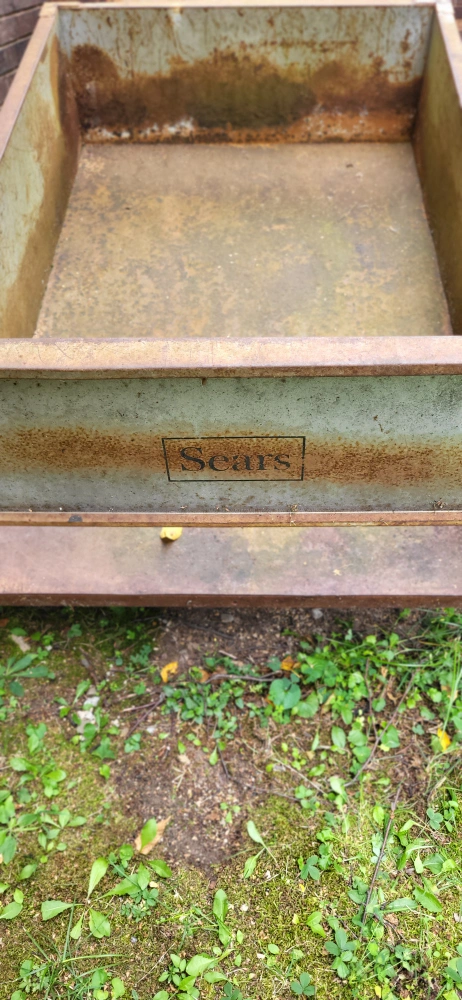 Selling a Sears utility trailer (as is). It shows signs of wear and rust, but is still functional. Perfect for hauling items around your property or for small landscaping projects. Back panel also lifts up or closes. Approximate Outer Measurements: L 48 3/4" x W 32" x D 11" Trailer post to hitch 28 1/2"