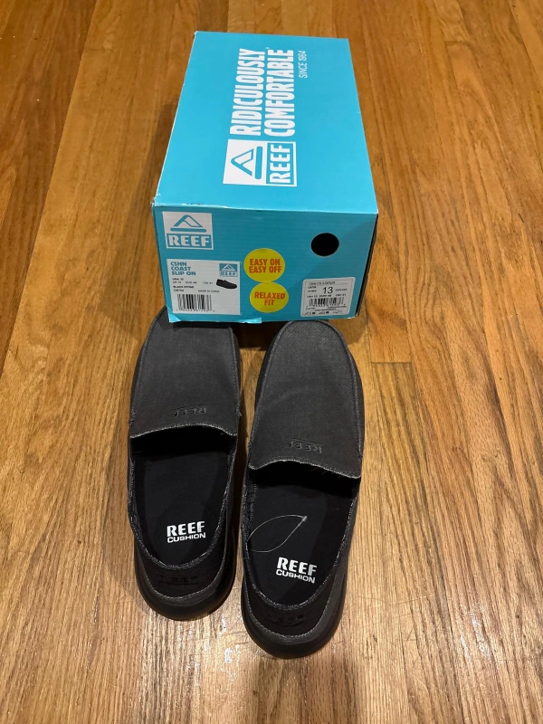 Selling a brand new pair of Reef Cushion Coast slip-on shoes in original box. Men's 13.