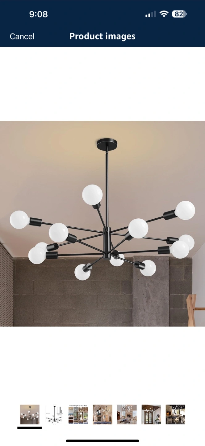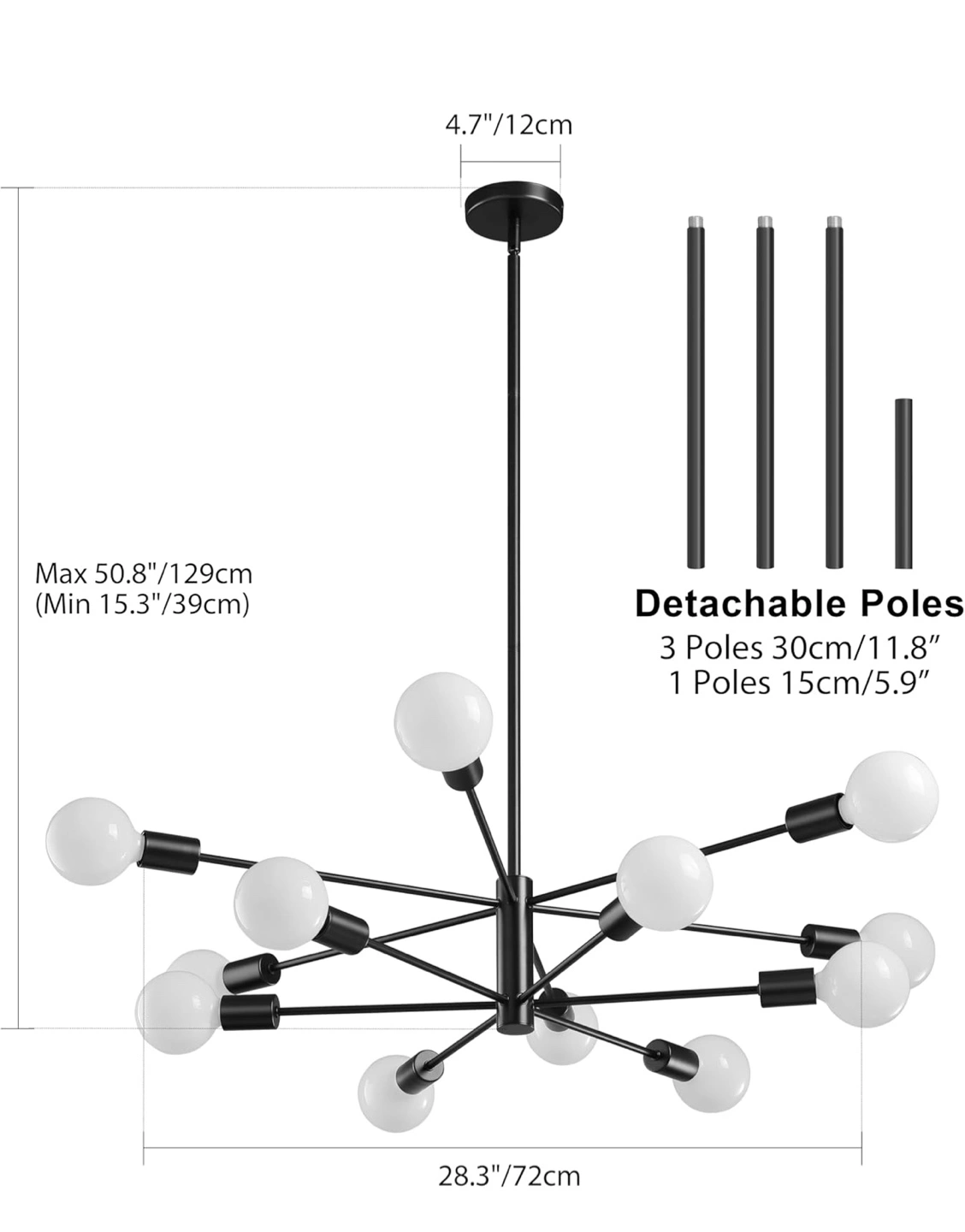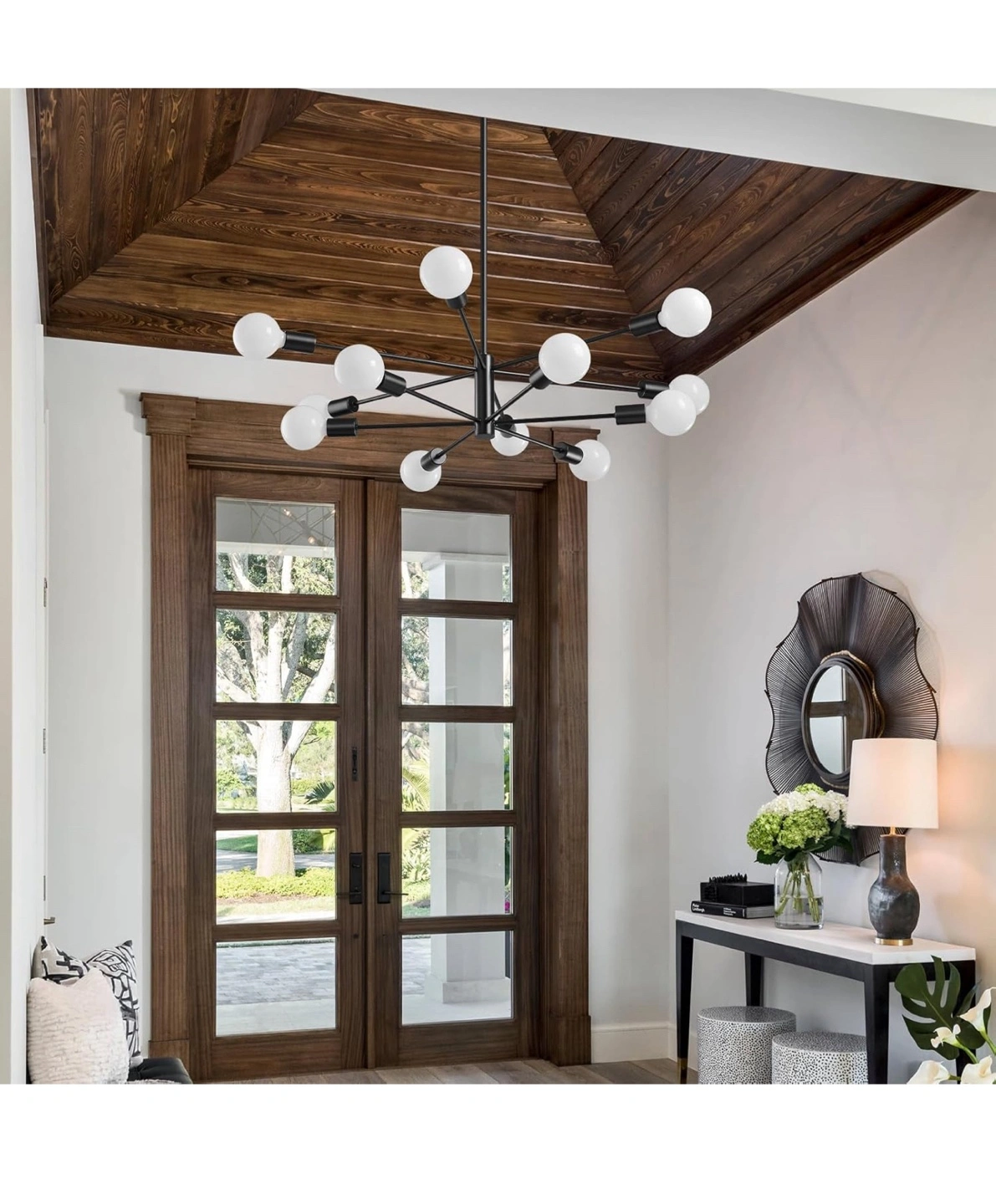 Looking to add a modern touch to your home? This Sputnik-style chandelier is perfect! It features a sleek black finish and 12 lights, creating a stunning focal point for any room.