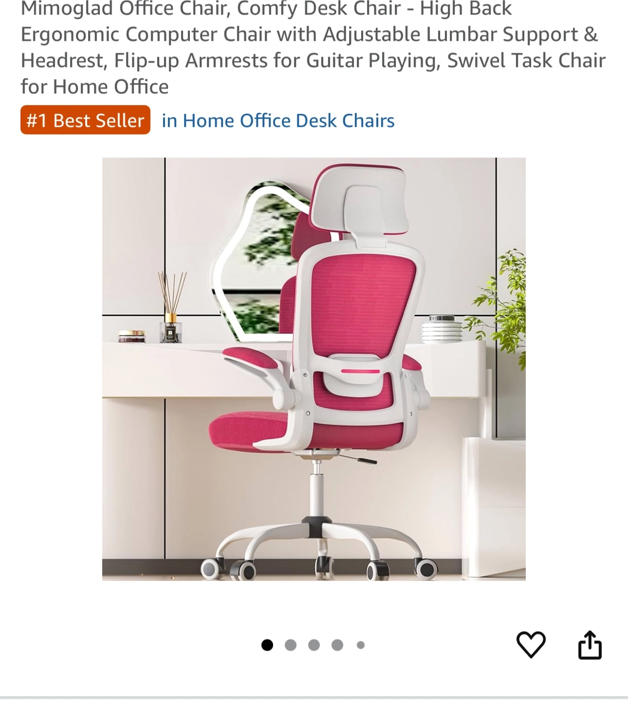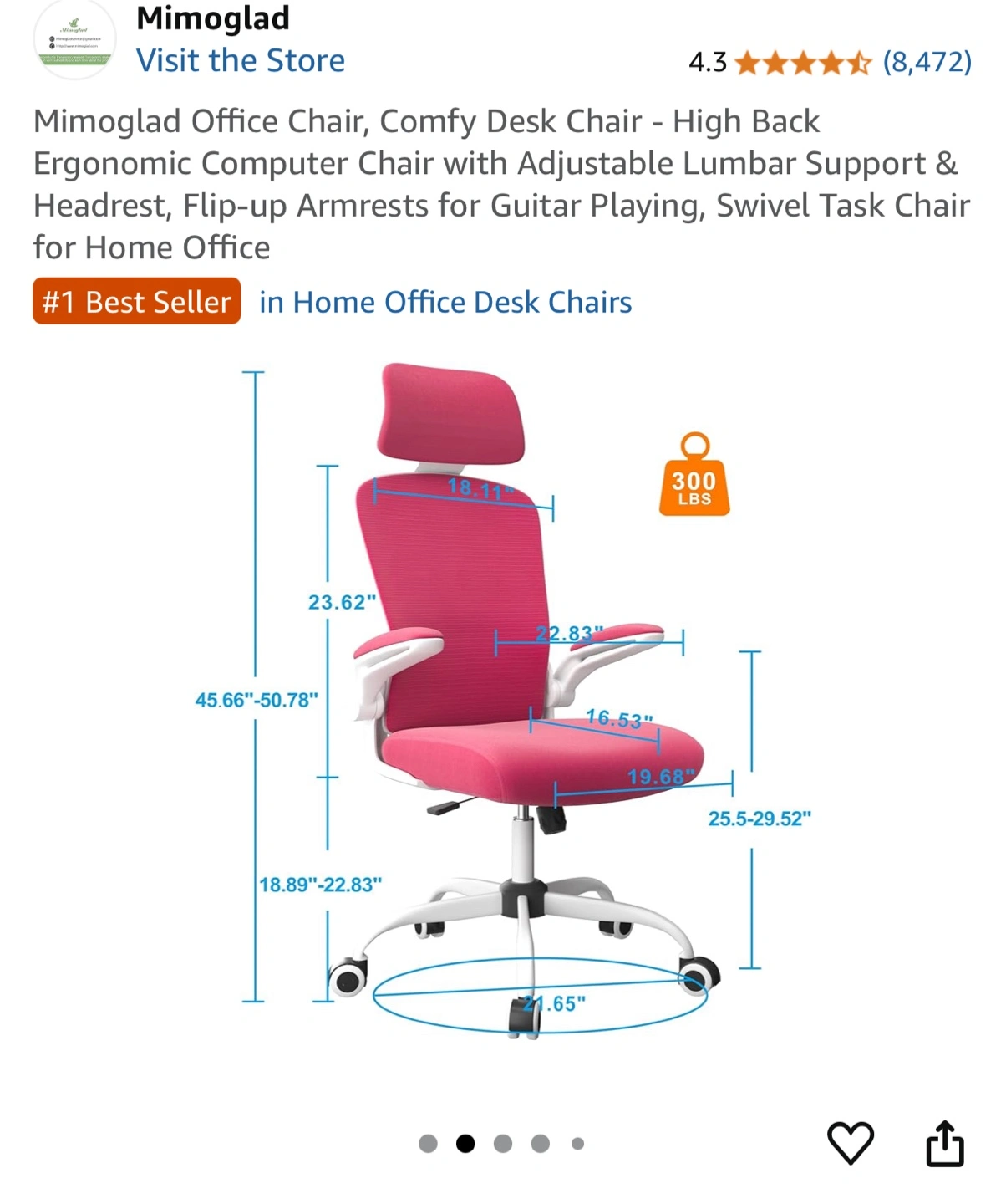 Looking to sell a Mimoglad Office Chair! It's a comfy desk chair with a high back, perfect for ergonomic support. It features adjustable lumbar support and a headrest, plus flip-up armrests which are great for guitar playing. The chair also has a swivel function, making it ideal for a home office setup
