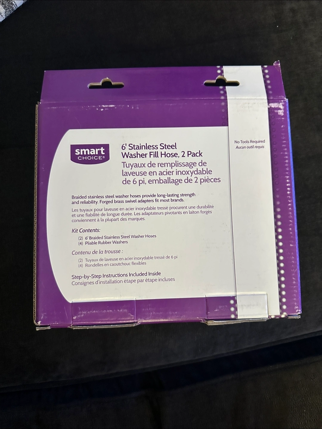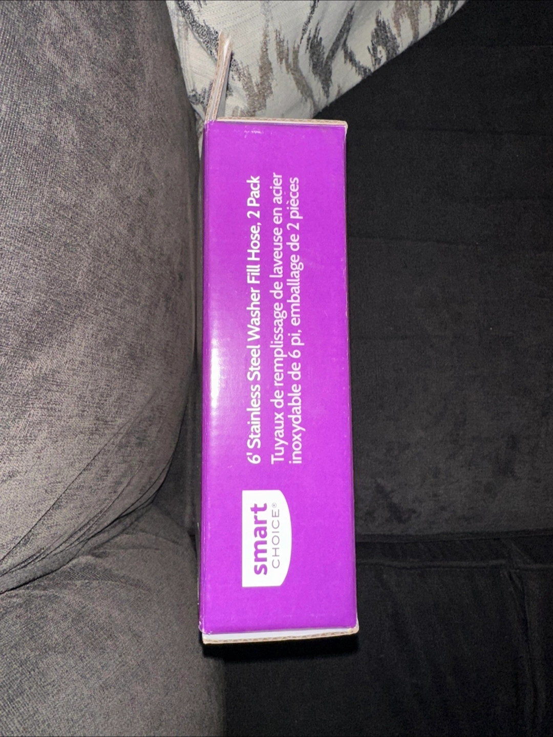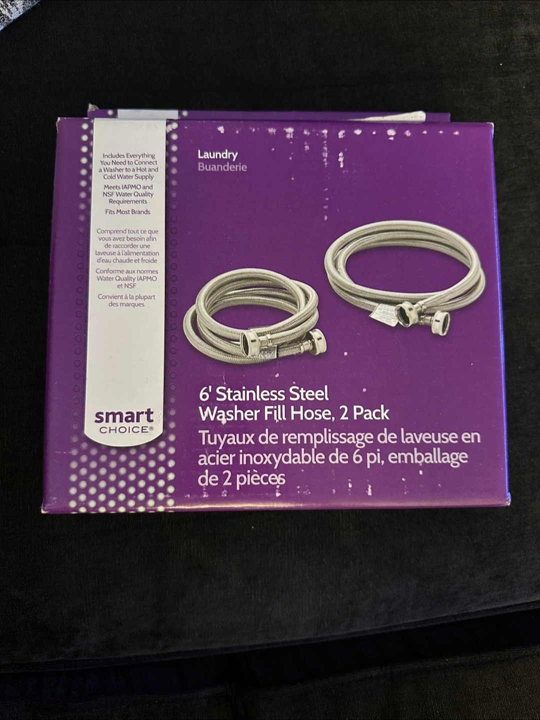 Selling a brand new Smart Choice 6' Stainless Steel Washer Fill Hose, 2 Pack! Includes everything you need to connect a washer to a hot and cold water supply. Fits most brands!