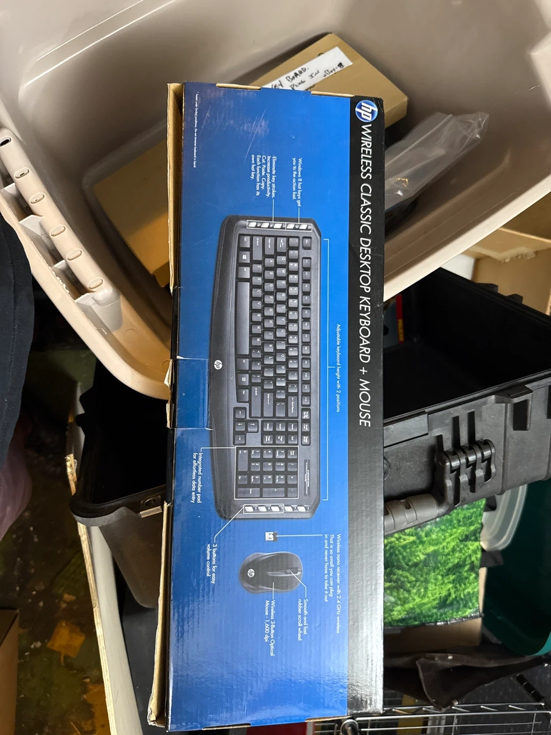 HP wireless classic desktop keyboard and mouse combo. It comes with: - Windows 8 hot keys for quick access - Adjustable keyboard height with 2 positions - A wireless nano receiver with 2.4 GHz wireless - A smooth and fast rubber scroll wheel on the mouse - A wireless 3-button optical mouse with 1,600 dpi