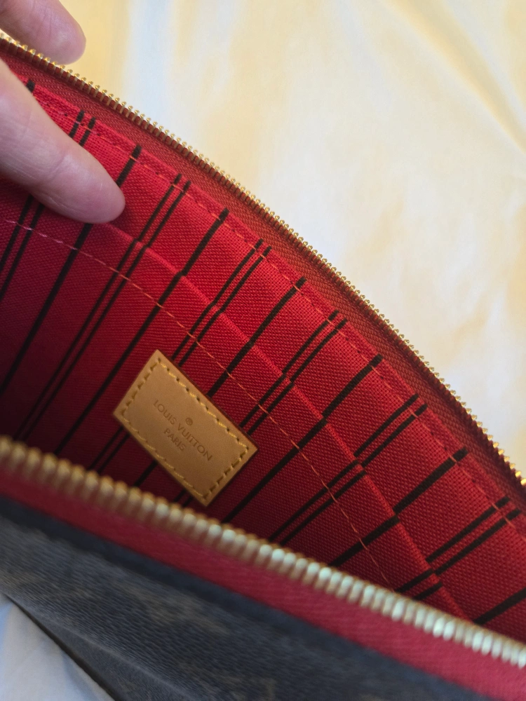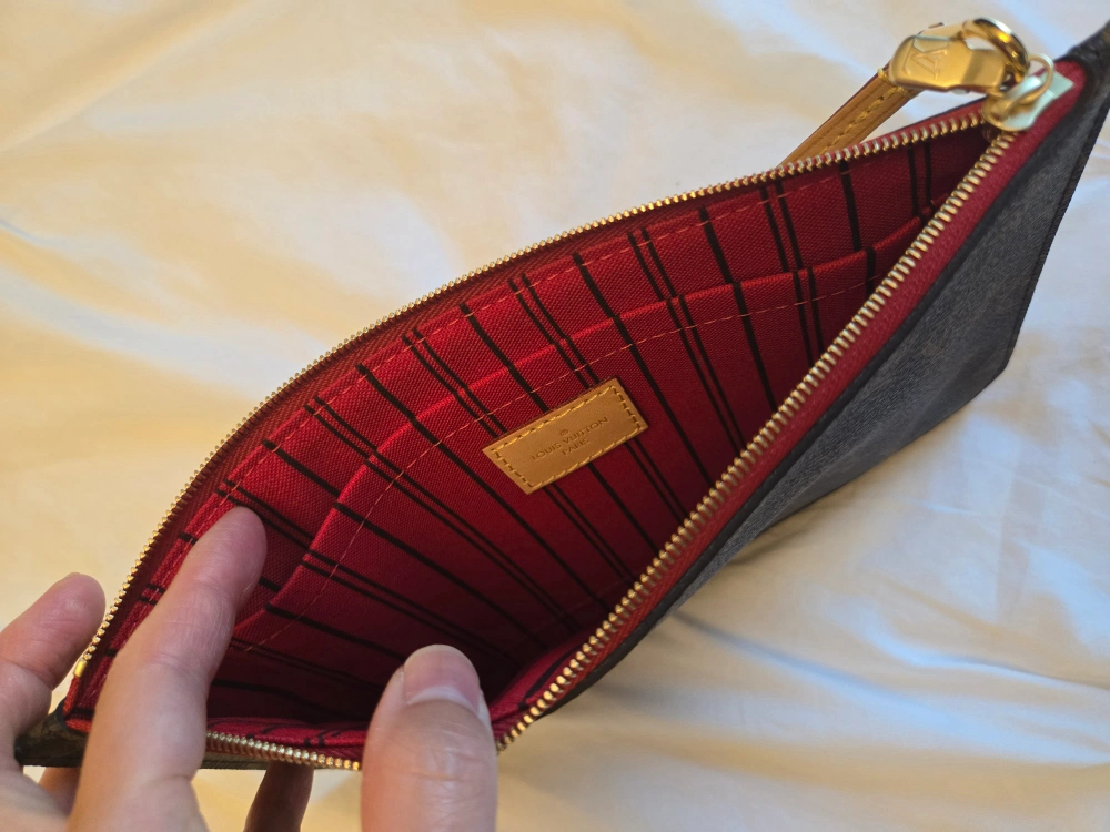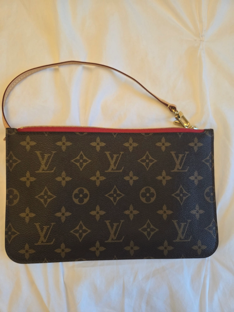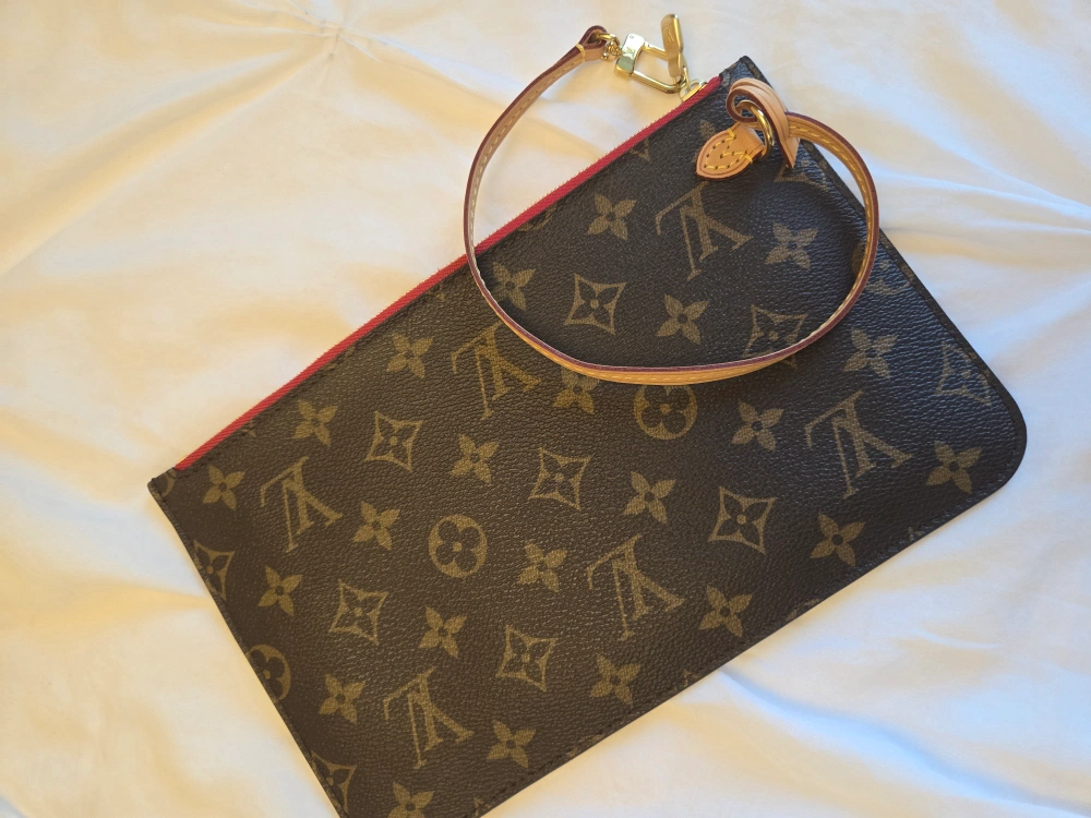 Selling a Louis Vuitton pouchette. Originally came with the neverfull. . It features the classic LV monogram print with a red interior. Perfect for carrying your essentials in style!